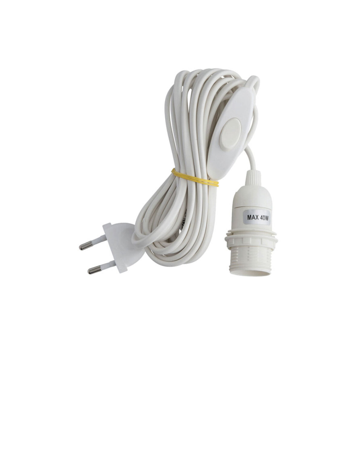 Hvid ledning med fatning fra Bungalow, som er ideel at bruge til papirs stjernelamperne fra Bungalow.