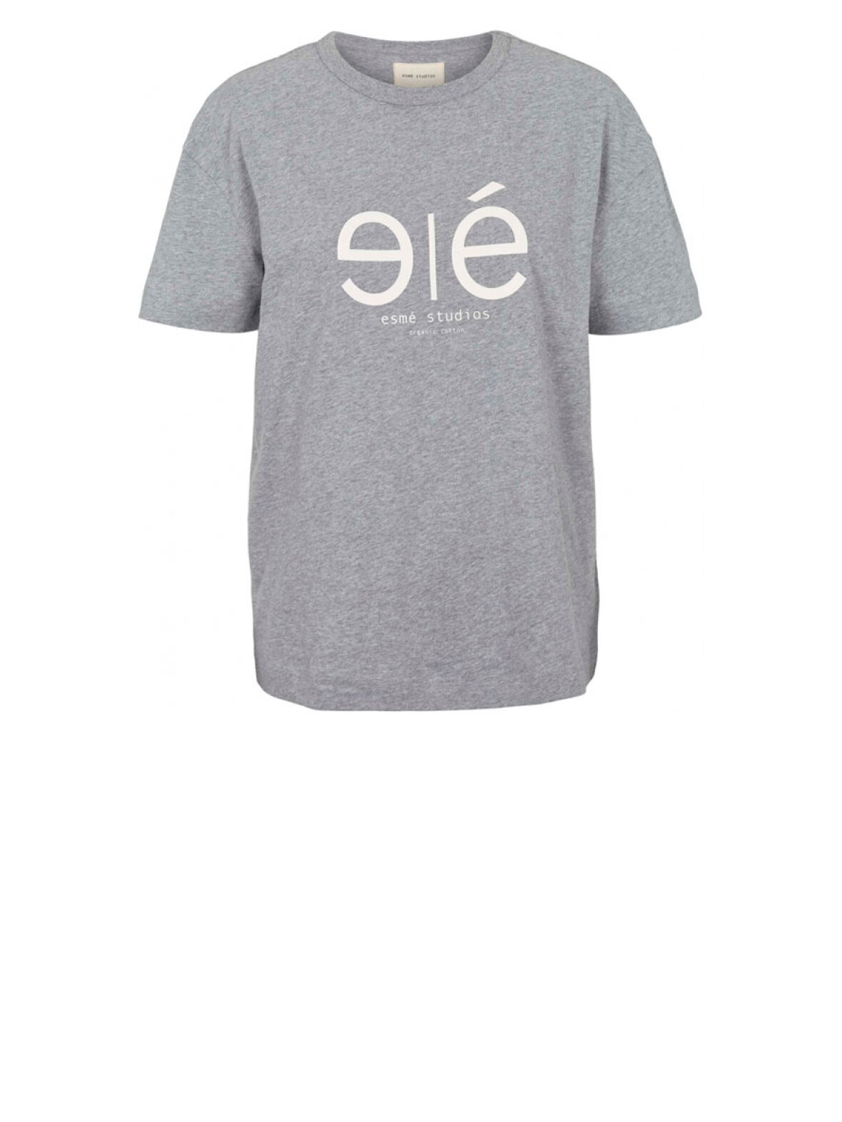 ❤︎ Skøn løstsiddende t-shirt fra Esmé Studios med rund hals og hvid Esme tryk på brystet.