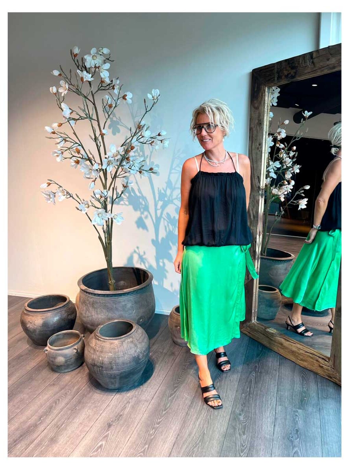 ❤︎ Smuk lang slå om nederdel fra GOSSIA. Celine nederdelen er designet i en smuk blanding af silke og viscose, som tilføjer nederdelen elegance og et smukt fald. Nederdelen reguleres og bindes i siden.
