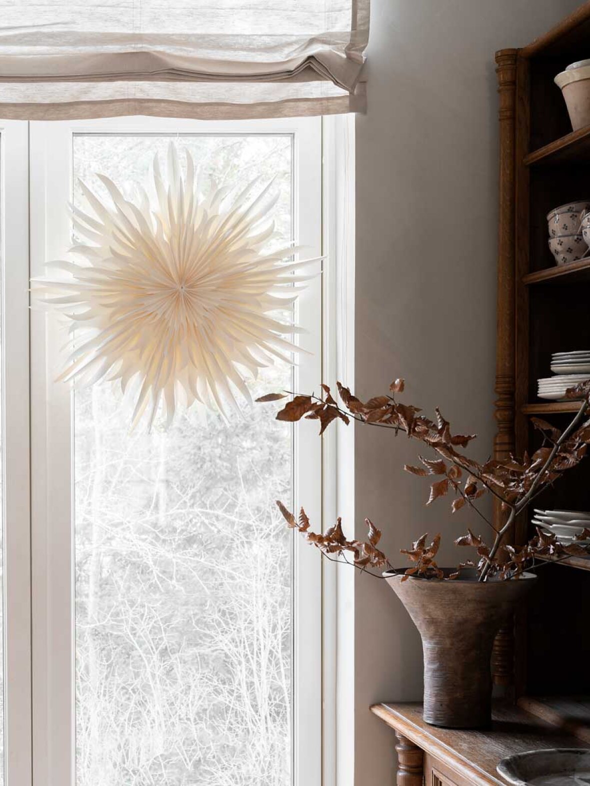 Stjernen er smuk i et mindre vindue eller i kombination med andre fine stjerner. Stjernen leveres i en elegant hvid gaveæske, perfekt som opbevaring.