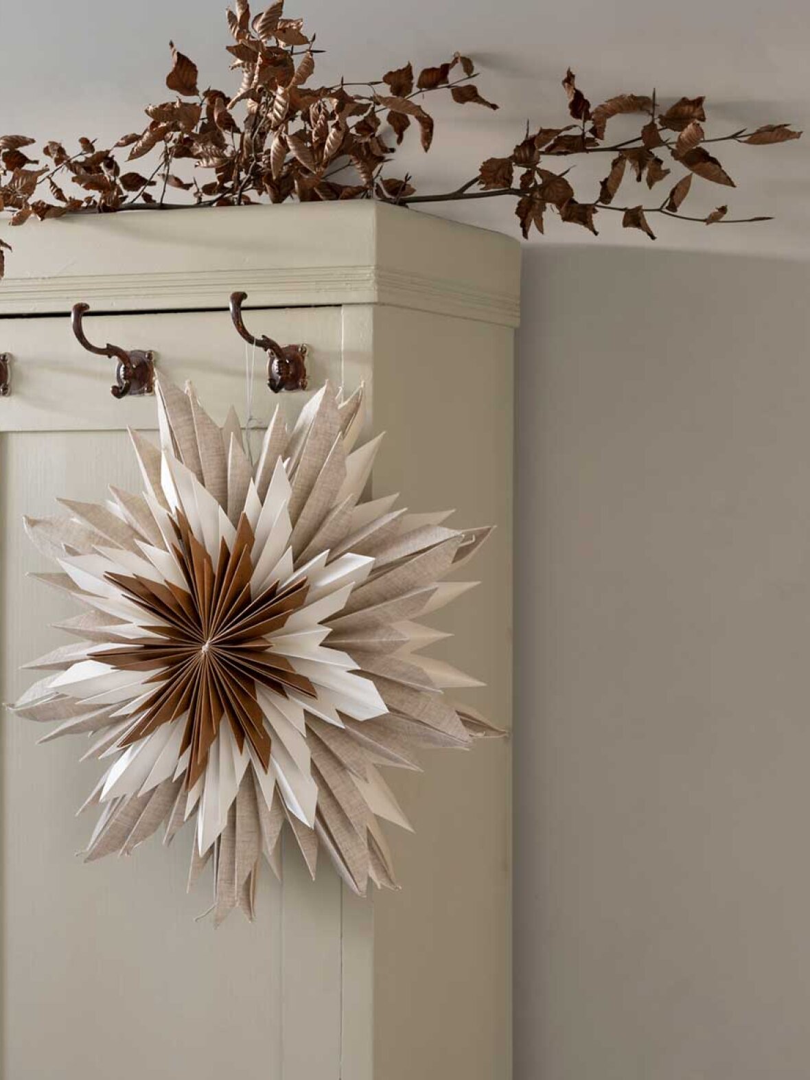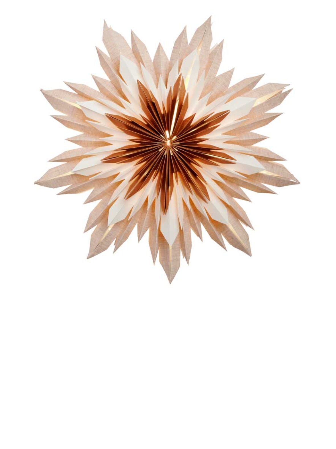 Smuk julestjerne fra Watt & Veke. Marta stjernen er en moderne, håndlavet papirstjerne, designet i klassisk hvid med smukt julet og traditionelt brune toner og hørkvalitetspapir.