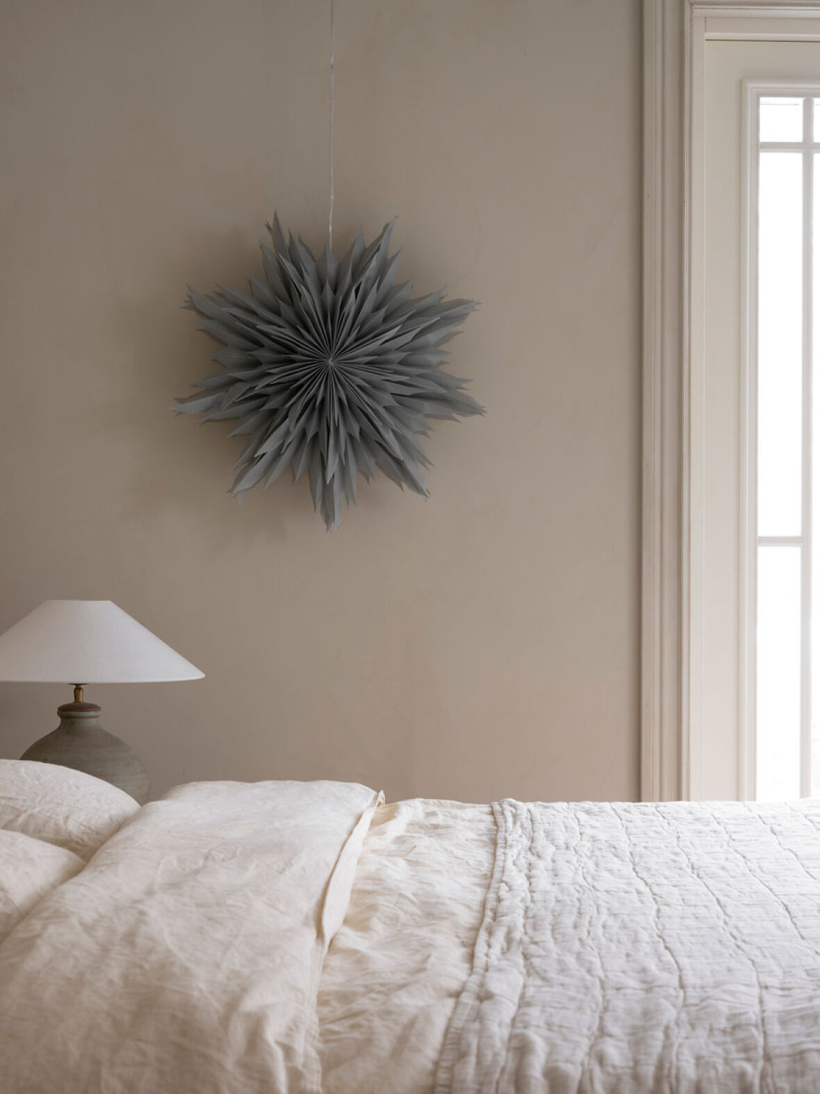 Smuk julestjerne fra Watt & Veke. Oslo stjernen er en moderne, håndlavet papirstjerne, designet i et gråt halvgennemsigtigt papir.