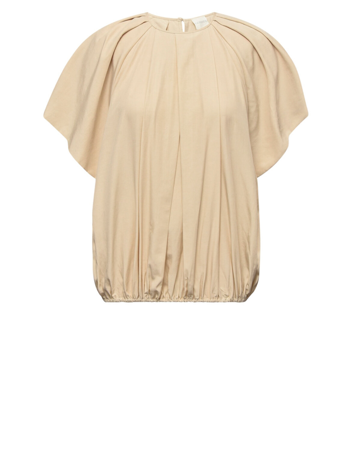 ❤︎ Skøn løstsiddende bluse fra GOSSIA i en lækker kvalitet. Mirsa blusen er designet med løs pasform, har korte ærmer, rund hals og lukkes med en knap i nakken. En virkelig skøn bluse med elastik i bunden, som giver en flot effekt til den ellers voluminøse bluse.