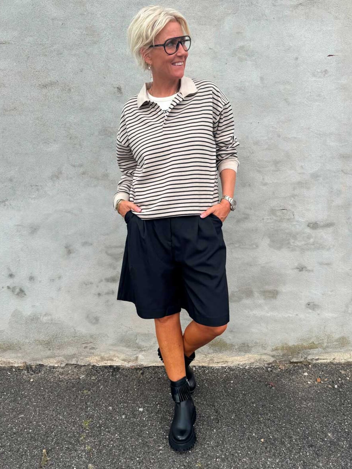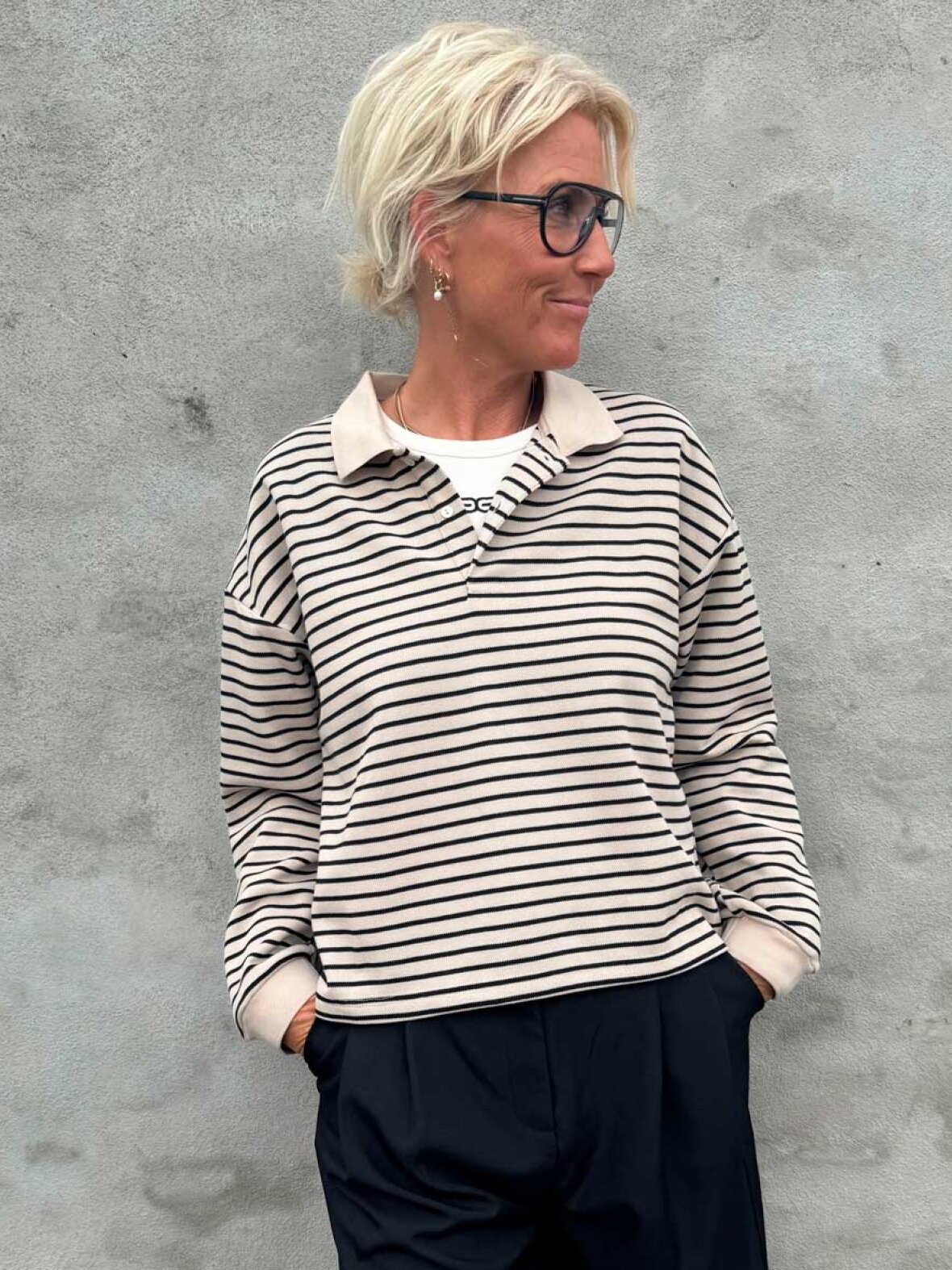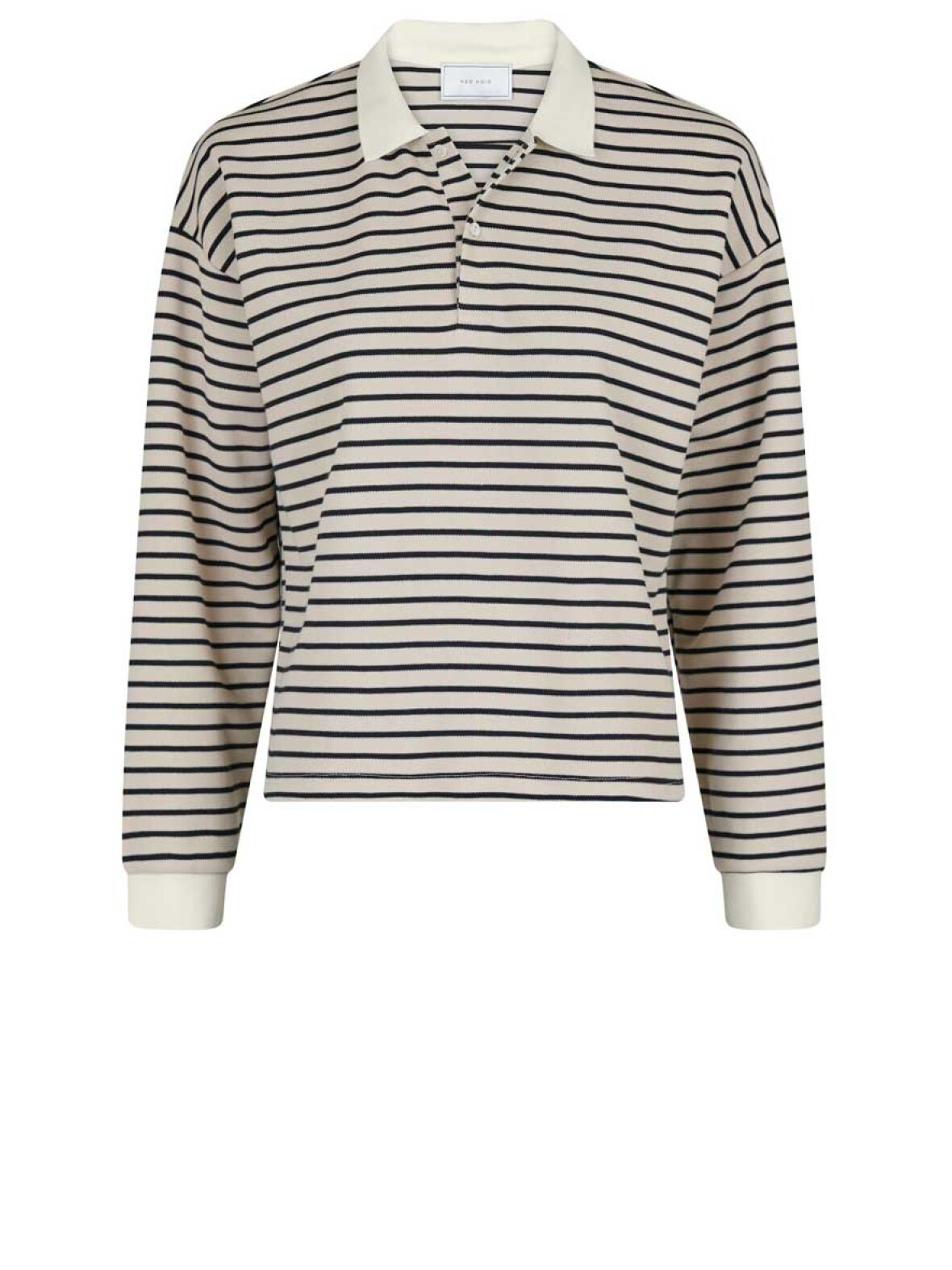 ❤︎ Cool polo bluse fra Neo Noir med et løstsiddende box fit, lange ærmer og krave. En let og blød kvalitet med tynde striber.
