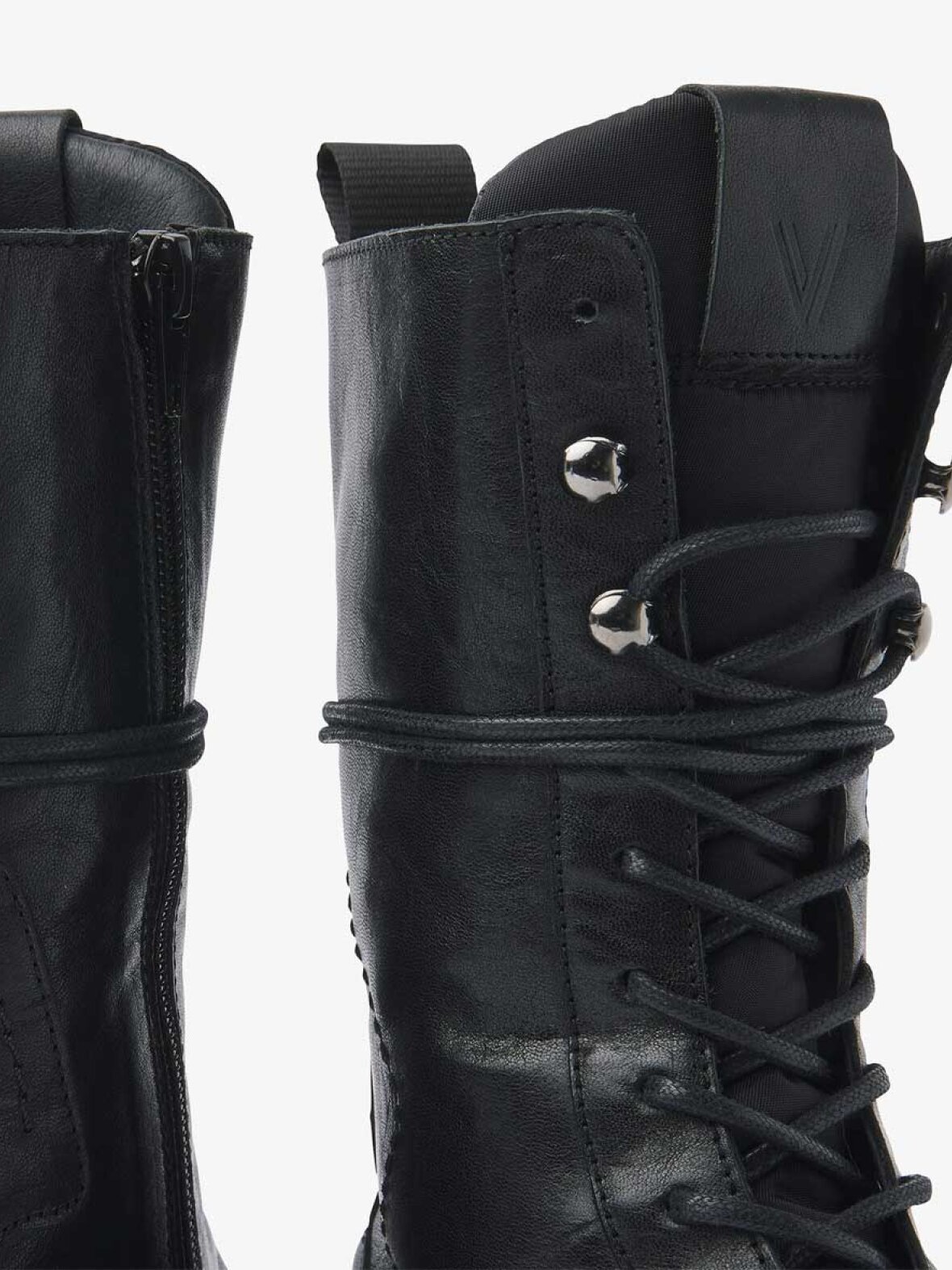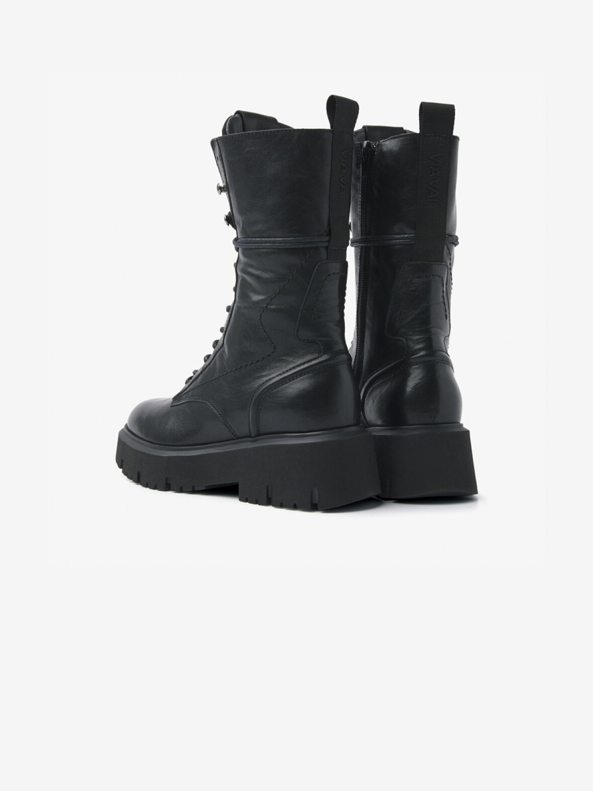 Cool biker inspireret støvle fra Via Vai i en flot glat skind kvalitet. Ziva Rave støvlen er designet med et mellem langt skaft, afrundet snude og har justerbar snørelukning, samt lynlås på indersiden. Støvelen er med chunky letvægtssåler og har en komfortabel pasform.