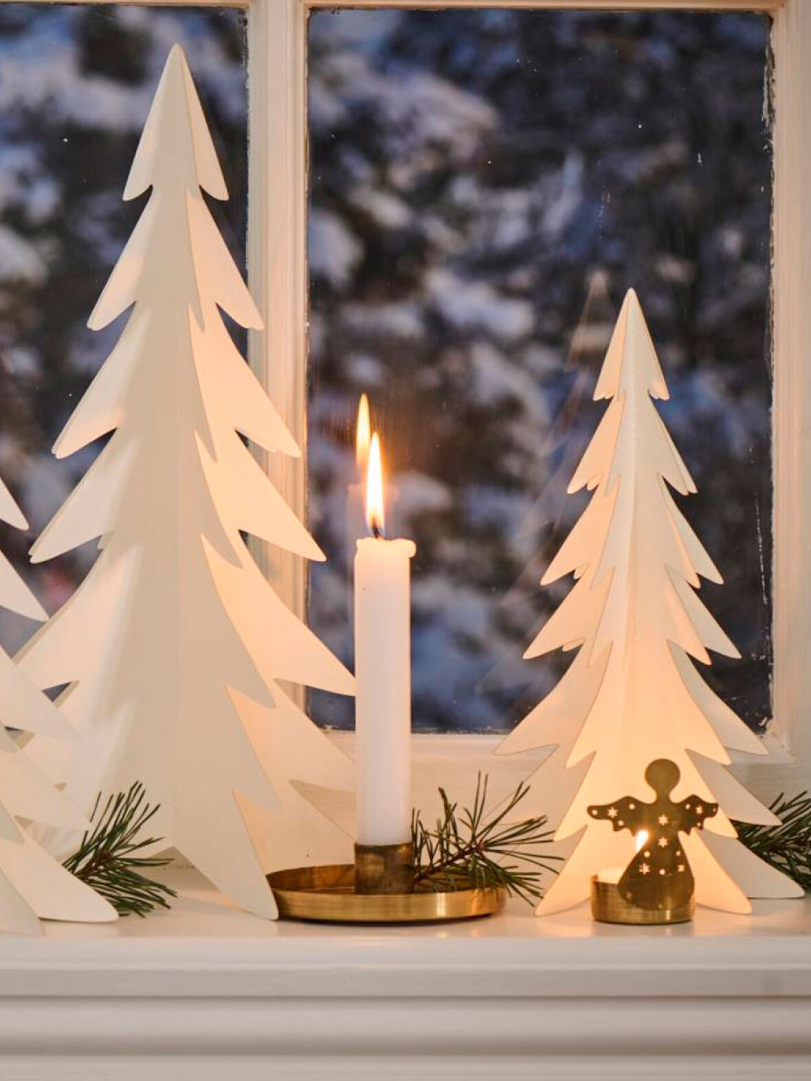 Dekorativt papirs juletræ fra Ib Laursens julekollektion, Stillenat. Stillenat kollektionen omfavner det ægte og enkle ved juletiden. Magien ved et stjerneskud, det sneklædte vinterlandskab og den frostklare nattehimmel samt "hygge", er indbegrebet af Stillenat. Simpel nordisk stil og klassisk rød jul.