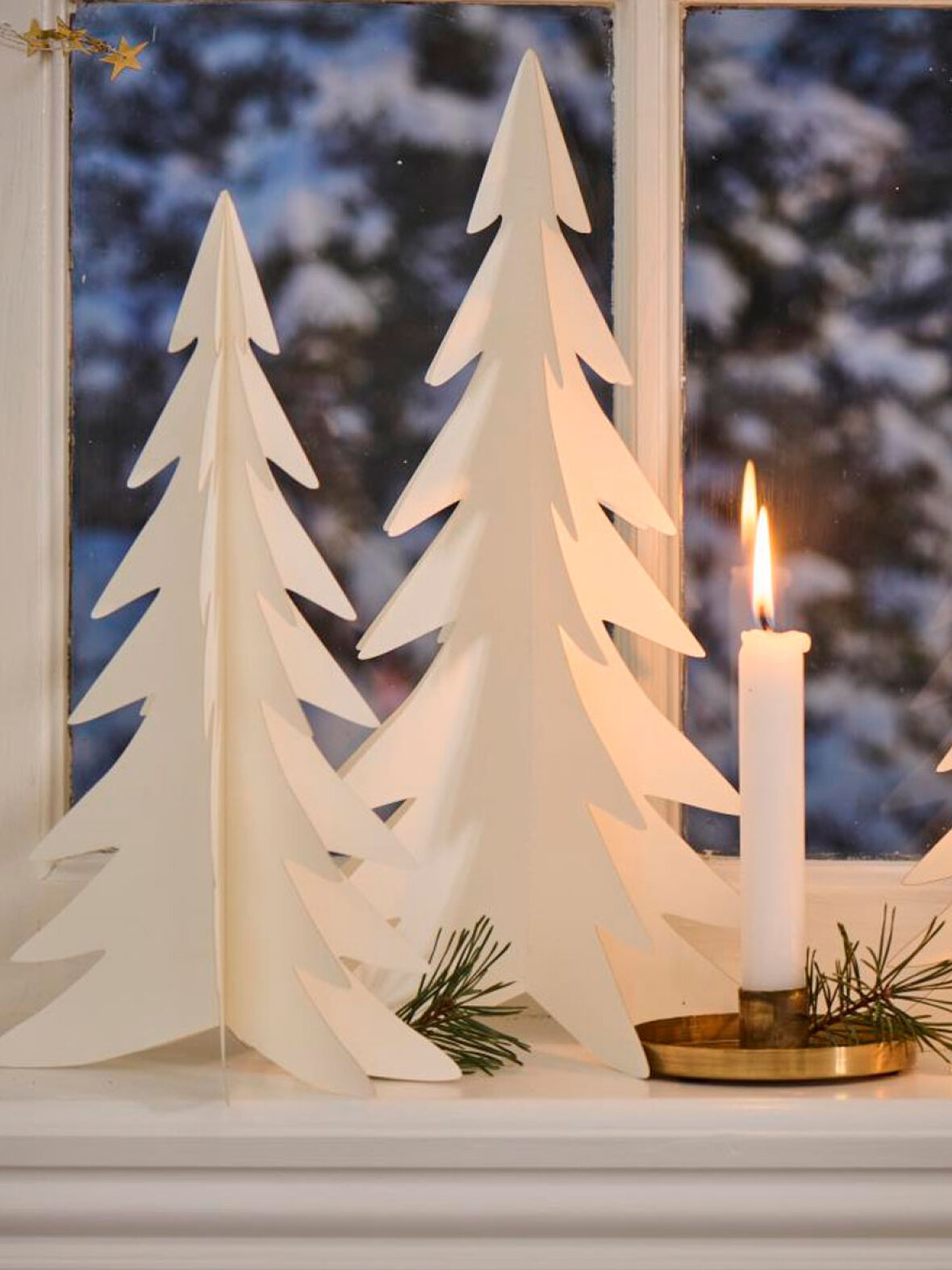 Dekorativt papirs juletræ fra Ib Laursens julekollektion, Stillenat. Stillenat kollektionen omfavner det ægte og enkle ved juletiden. Magien ved et stjerneskud, det sneklædte vinterlandskab og den frostklare nattehimmel samt "hygge", er indbegrebet af Stillenat. Simpel nordisk stil og klassisk rød jul.