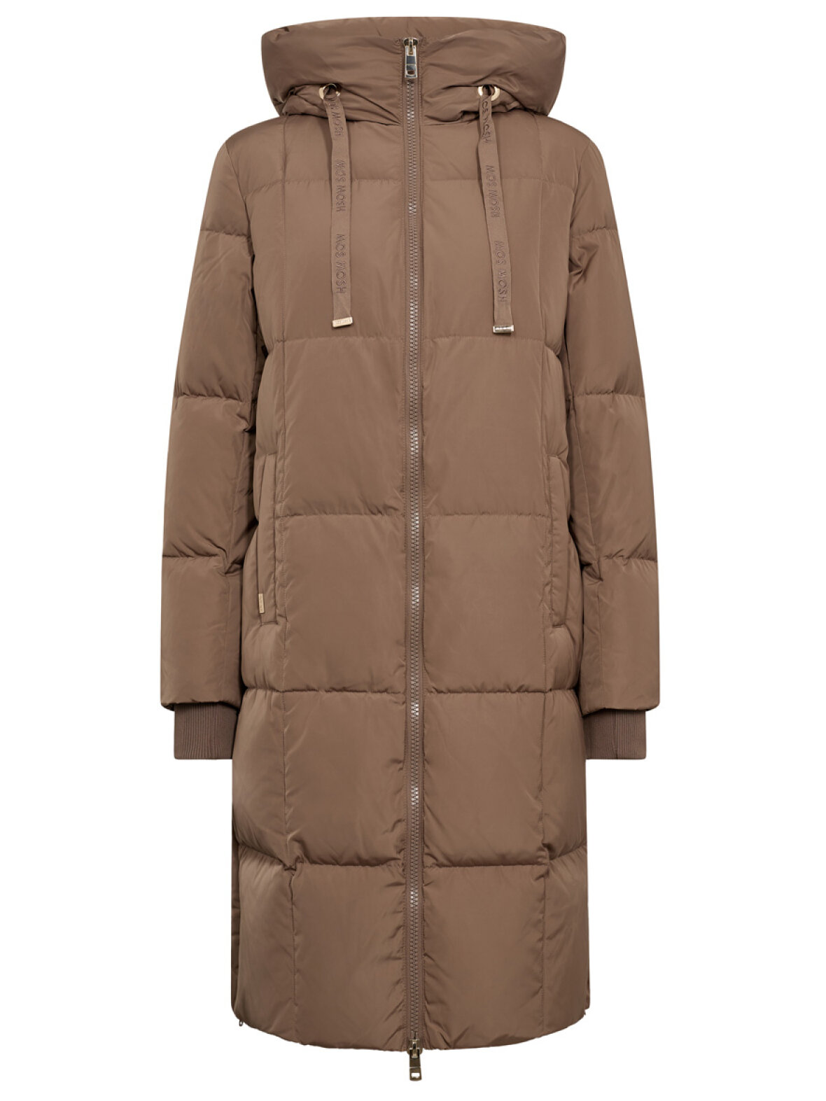 ❤︎ Skøn varm dunjakke fra Mos Mosh med fine detaljer. Den lange jakke har tovejs lynlåslukning, høj hals og hætte med snøre. Virkelig lækker dunjakke med trykknapslommer foran, ribkant ved håndleddet, samt lynlås slids i begge sider forneden.