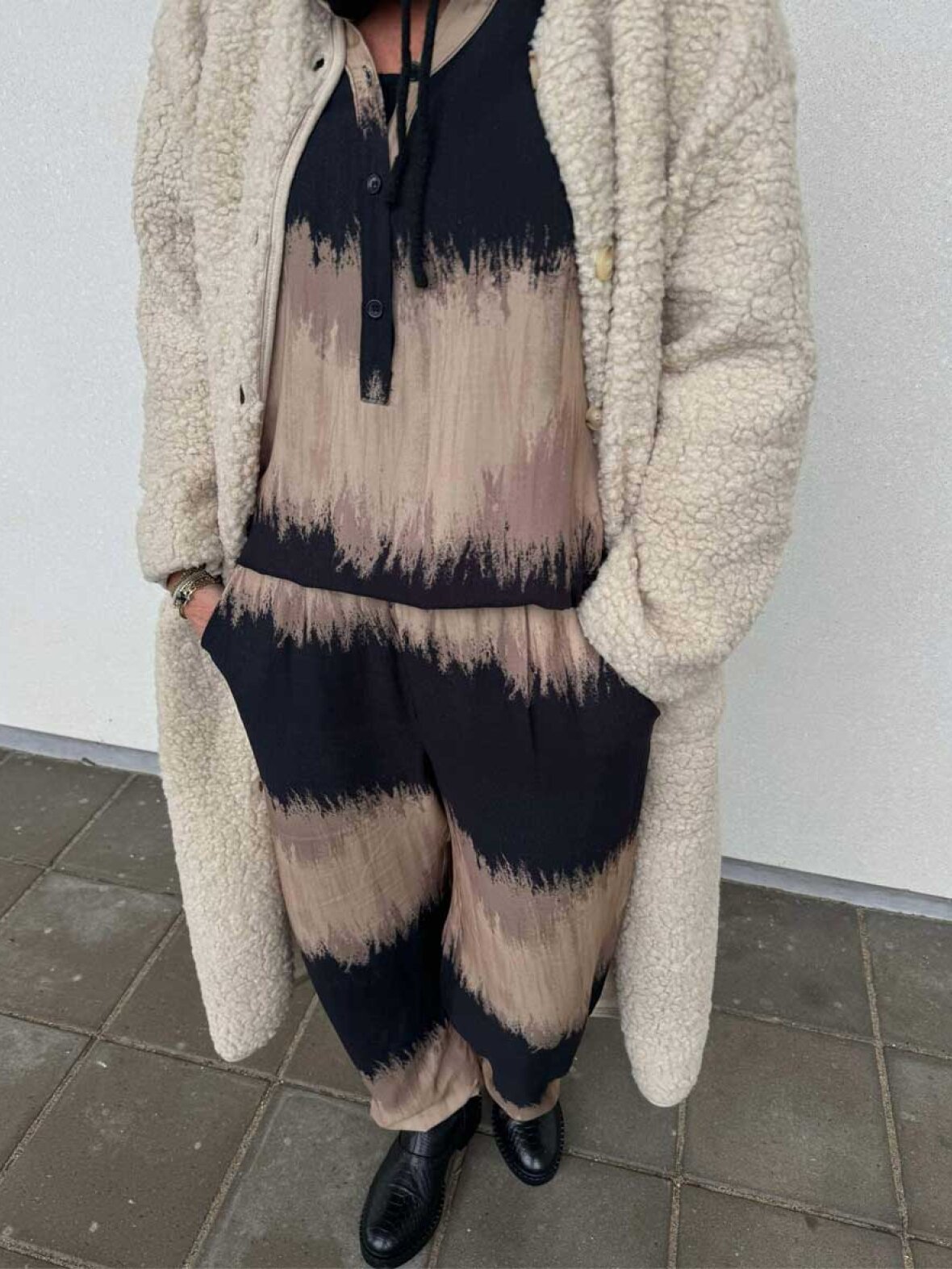 ❤︎ Skøn teddy jakke fra Marta Du Château. Stephanie jakken er designet som en lang frakke i en blød teddy polyester med lange ærmer og to store frontlommer, samt lukkes med knapper ned foran.