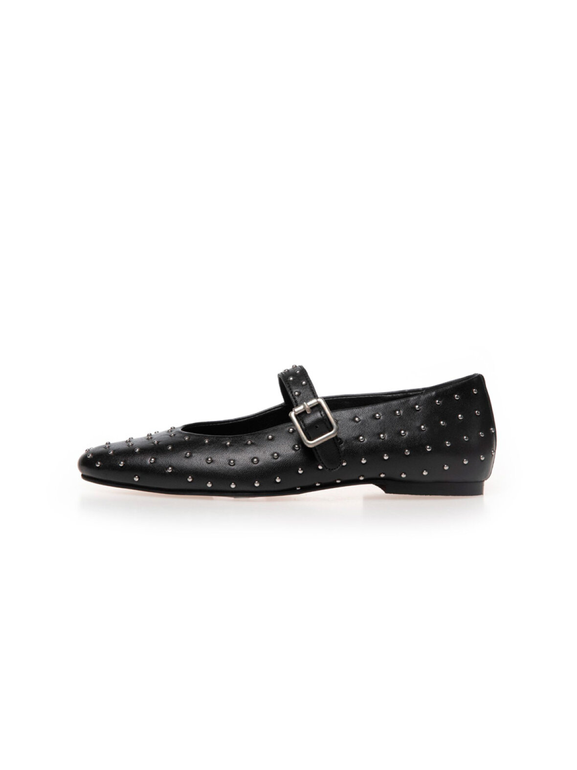 ❤︎ Smuk og stilfuld ballerina sko fra Copenhagen Shoes i en smuk sort skind kvalitet med nitter. Forever Love ballerinaen er designet med afrundet snude og justerbar spænde detalje, samt med en masse små nitter. Ballerinaen er i blødt skind og med Copenhagen Shoes bløde og super behagelige latex skum indersåler, som gør dem yderst behagelig at have på.