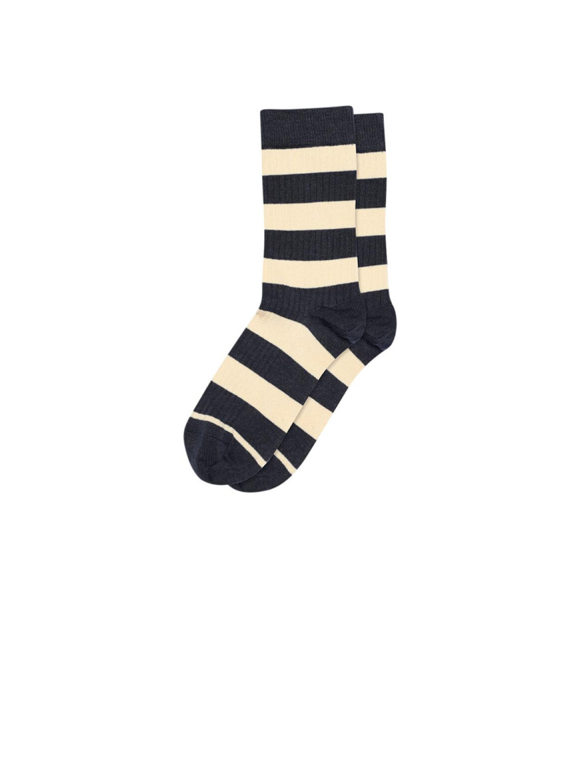 Super skønne strømper fra Mp Denmark i en lækker blød kvalitet. Signe strømperne er lavet i en skøn rib kvalitet med brede striber, forstærket hæl og tå, samt i Mp Denmarks velkendte kvalitet med blød søm ved tåen, som sikre god komfort og er behaglig mod din hud.