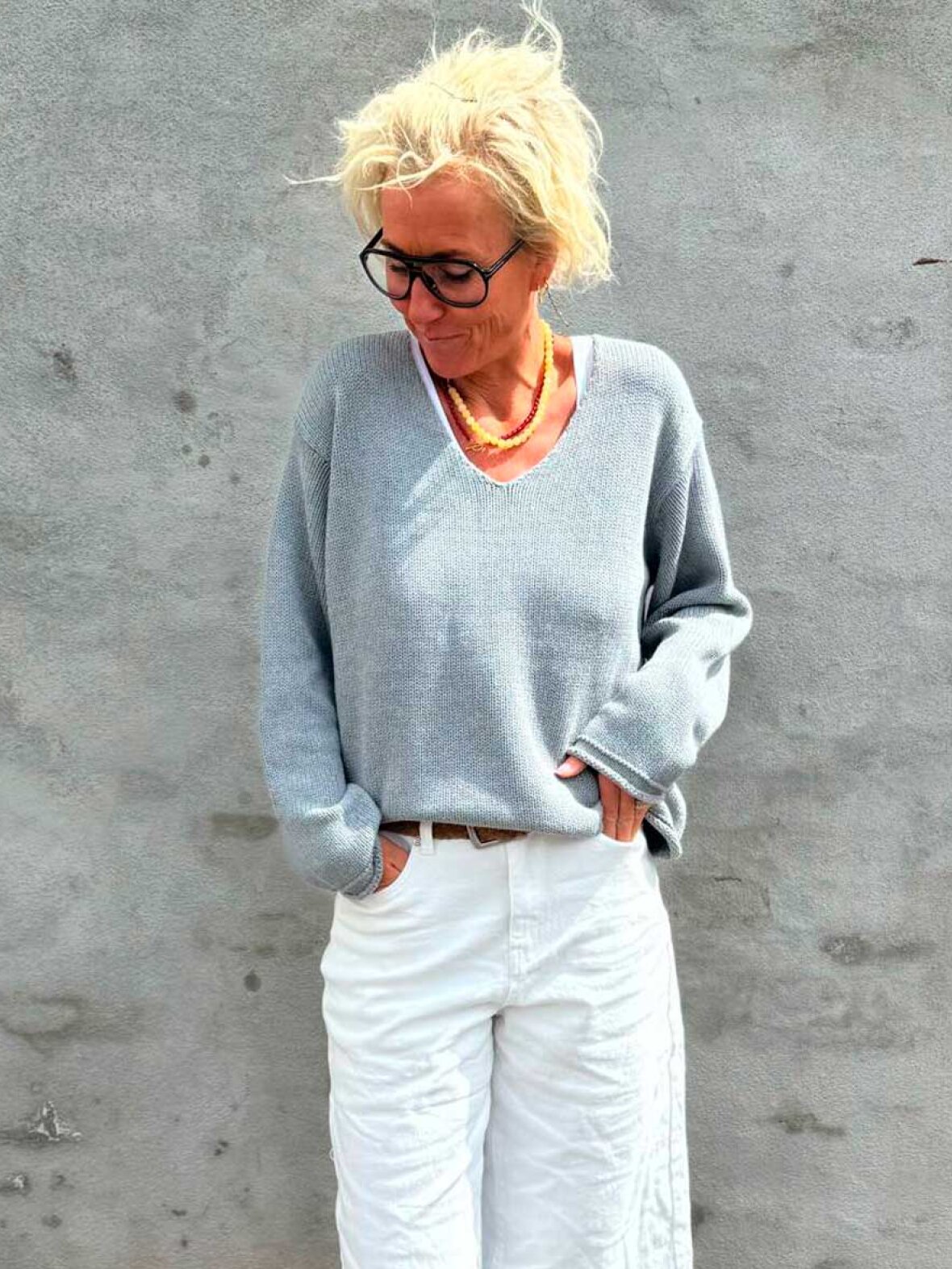 ❤︎ Lækker strik fra Mos Mosh i blød bomuldskvalitet. MMBine LS V-neck strikken har en løs og rummelig pasform, en pæn v-hals og lange ærmer.