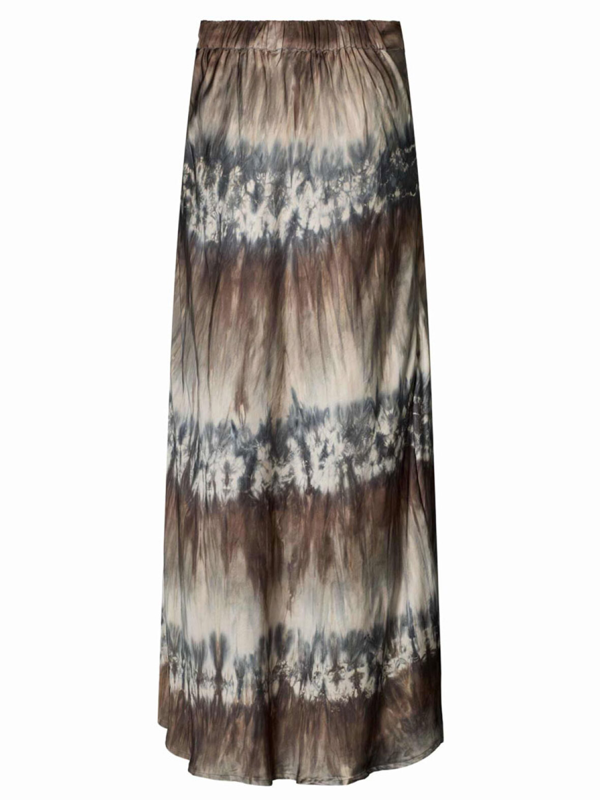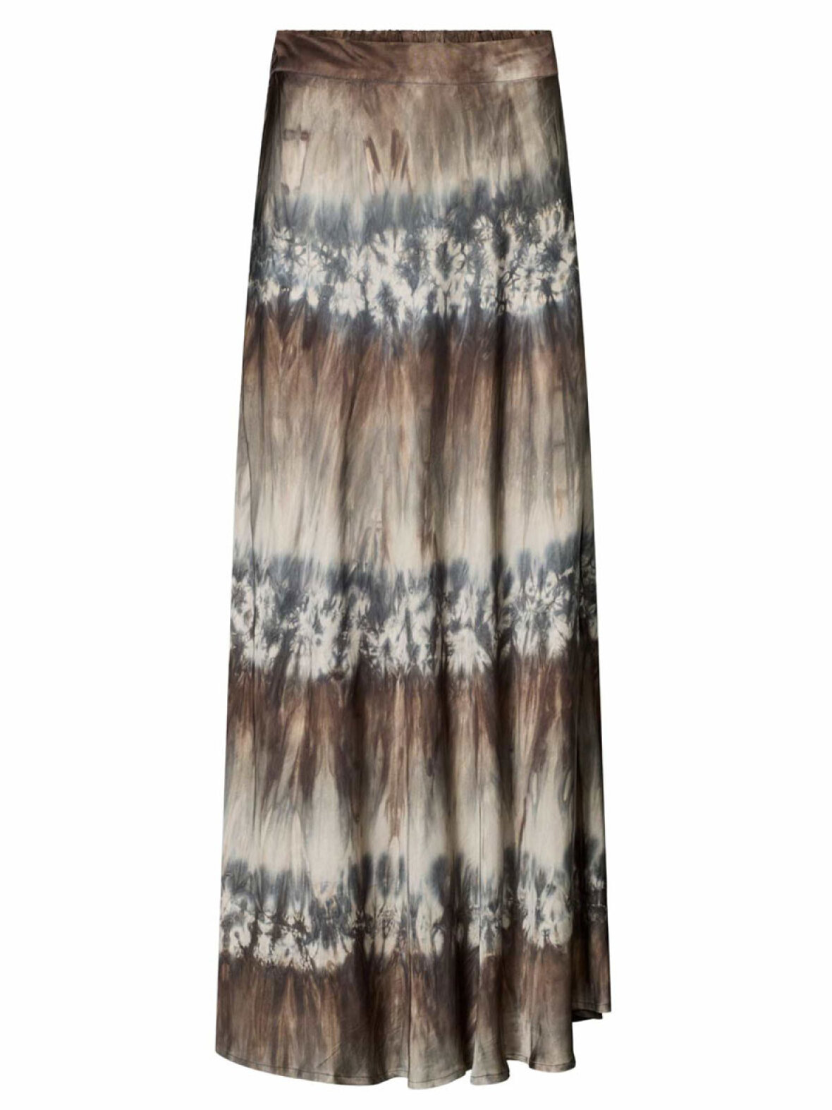 ❤︎ Smuk lang nederdel fra Rabens Saloner med det smukkeste håndlavede mønster. Willie A-line nederdelen er i tynd satin, har det fineste fald i en flatterende a-form, og elastikkant bagpå i taljen.