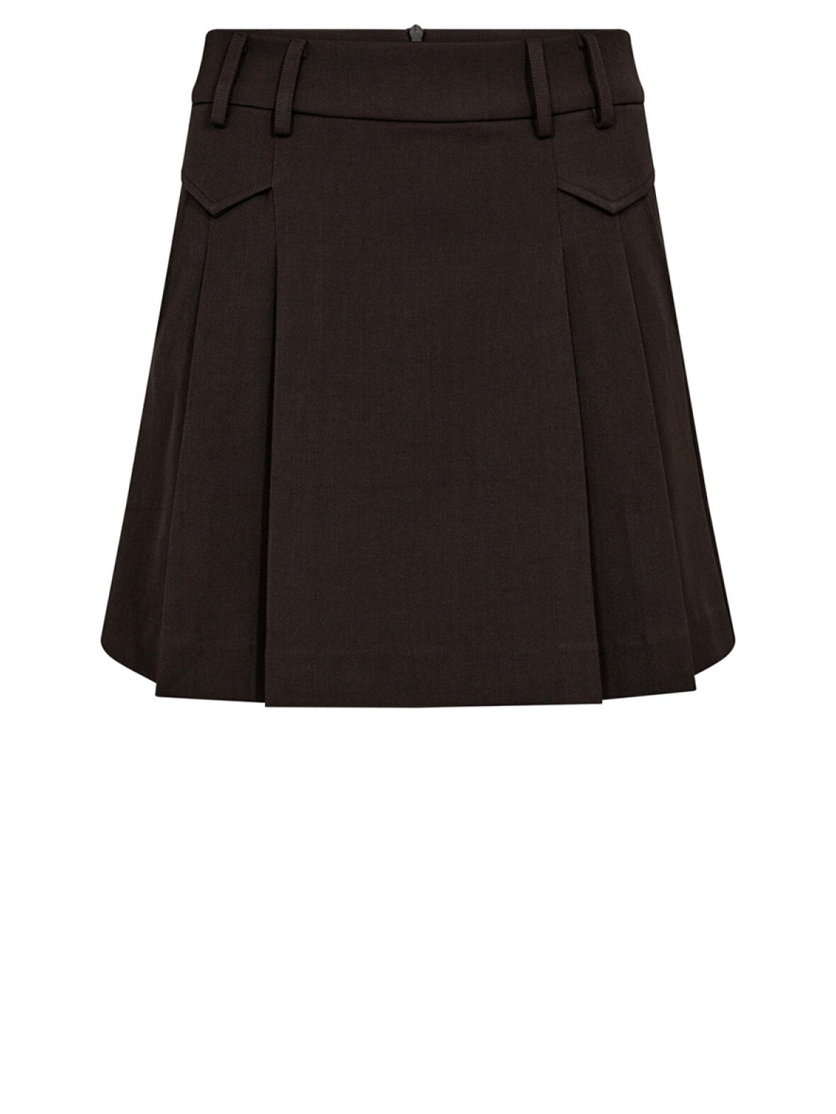 ❤︎ Smuk nederdel fra Co'couture. Nederdelen har læg foran, som giver en fin plisse effekt. Den har bælte stropper, og lommer foran. Den lukkes bagpå med lynlås.