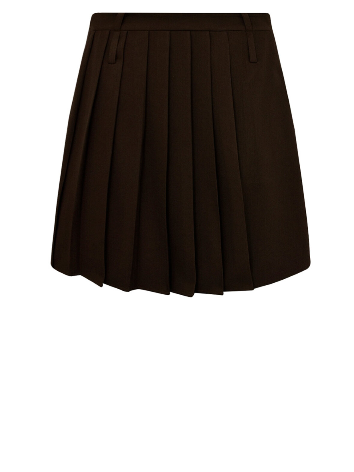 ❤︎ Smuk kort plissenederdel fra Gossia med smukke læg bagpå. DuaGO nederdelen har bæltestropper, lommer i siden og vidde i skørtet. Nederdelen lukkes bag på med en skjult lynlås.