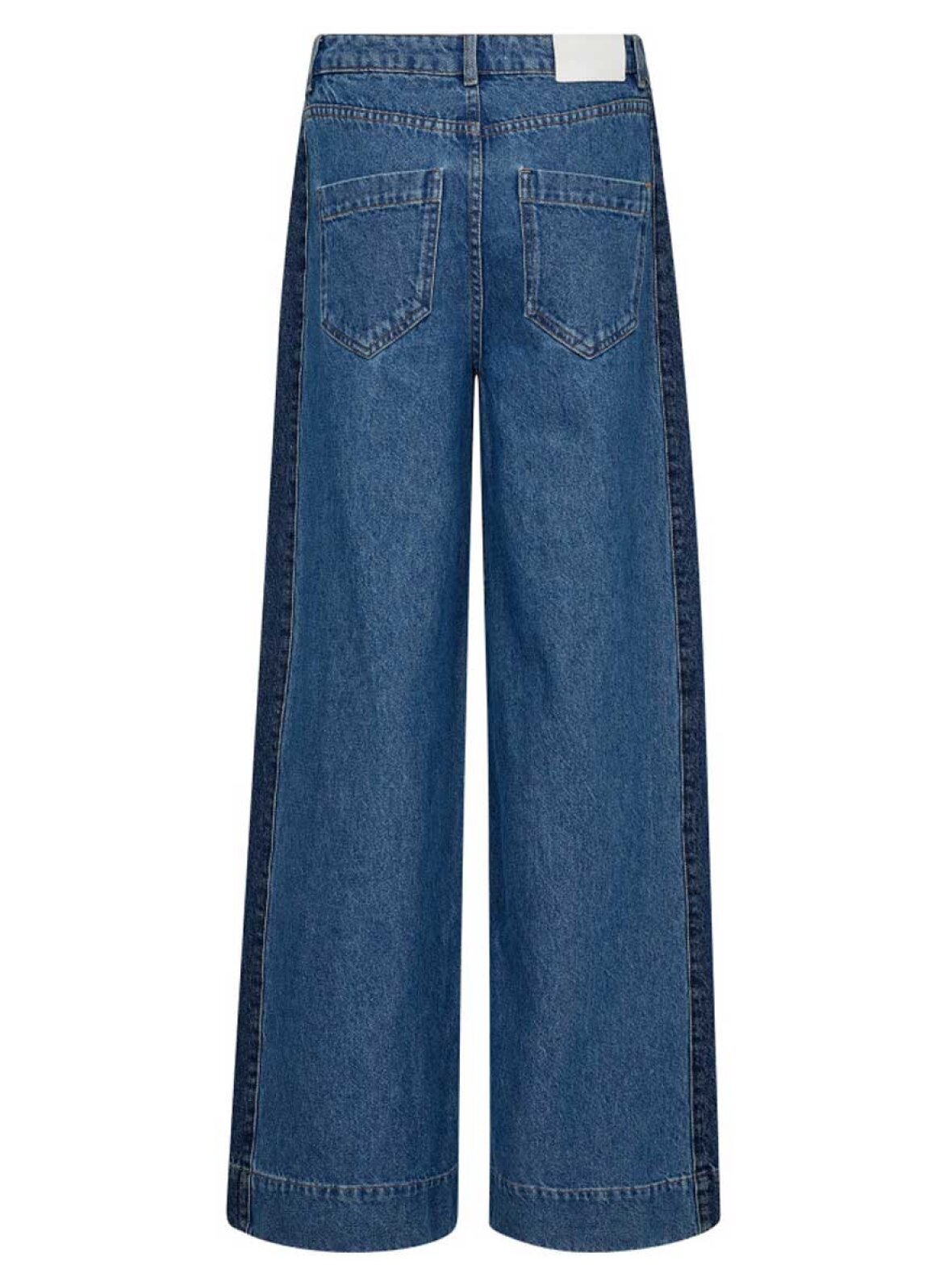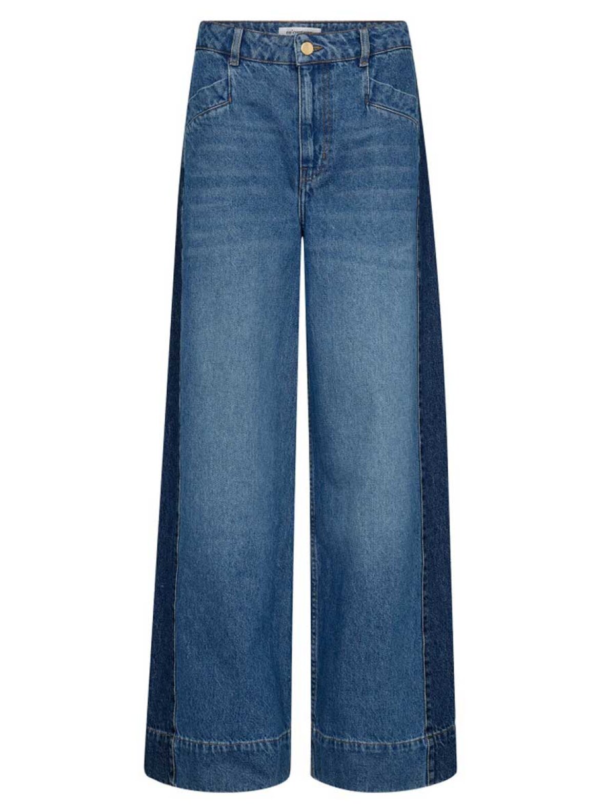❤︎ Super cool jeans fra Co'Couture i blød denim. BilbaoCC Wide jeansene har kontrastpaneler ned langs siderne på begge ben, fine frontlommer og vidde i benene. De lukkes med skjult lynlås og knap.