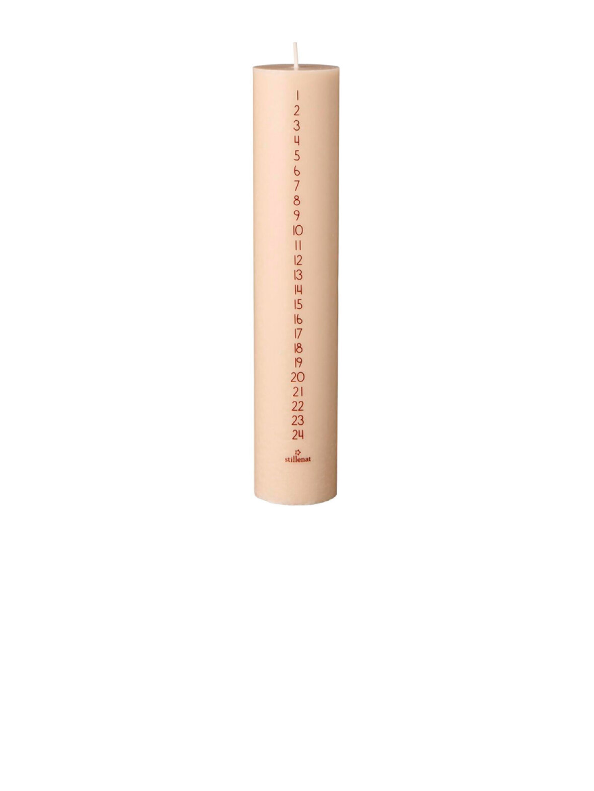 Fint kalenderlys med tal fra Ib Laursens julekollektion, Stillenat. Stillenat kollektionen omfavner det ægte og enkle ved juletiden. Magien ved et stjerneskud, det sneklædte vinterlandskab og den frostklare nattehimmel samt "hygge", er indbegrebet af Stillenat. Simpel nordisk stil og klassisk rød jul.