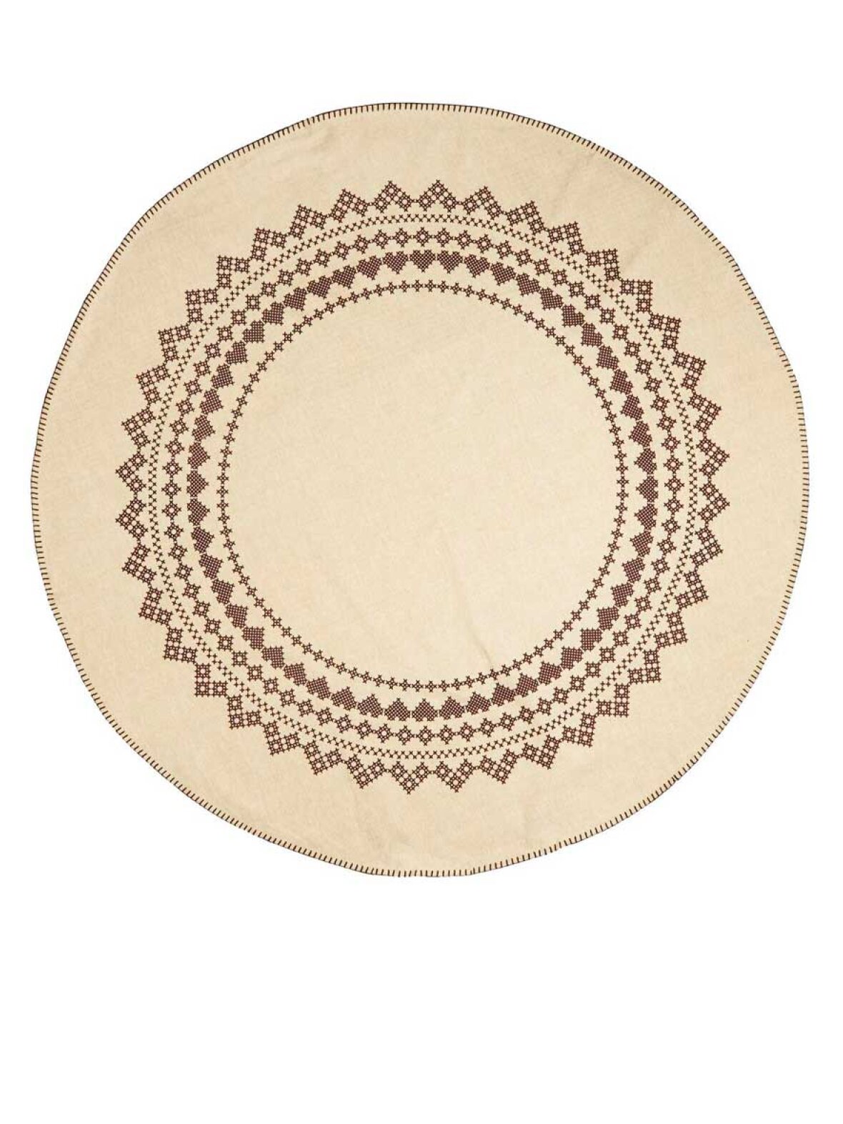 Fint juletræstæppe med mønster og stikninger fra Ib Laursens julekollektion, Stillenat. Stillenat kollektionen omfavner det ægte og enkle ved juletiden. Magien ved et stjerneskud, det sneklædte vinterlandskab og den frostklare nattehimmel samt "hygge", er indbegrebet af Stillenat. Simpel nordisk stil og klassisk rød jul.
