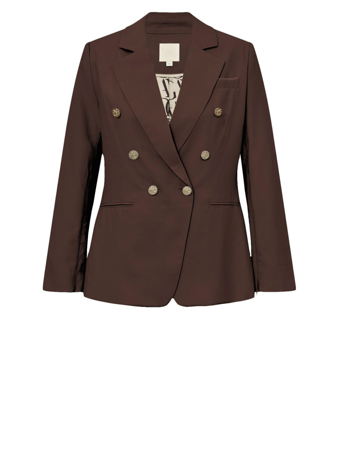 ❤︎ Smukkeste GOSSIA blazer med fine detaljer. Paula blazeren er designet i et regular snit med klassisk revers, dobbeltradet knaplukning, skulderpuder, samt smukke gyldne knapper. Som ekstra fin detalje har Paula blazeren en skjult lynlås på hvert ærme. evt. med den matchende Katla buks for et fuldendt og stilfuldt look.