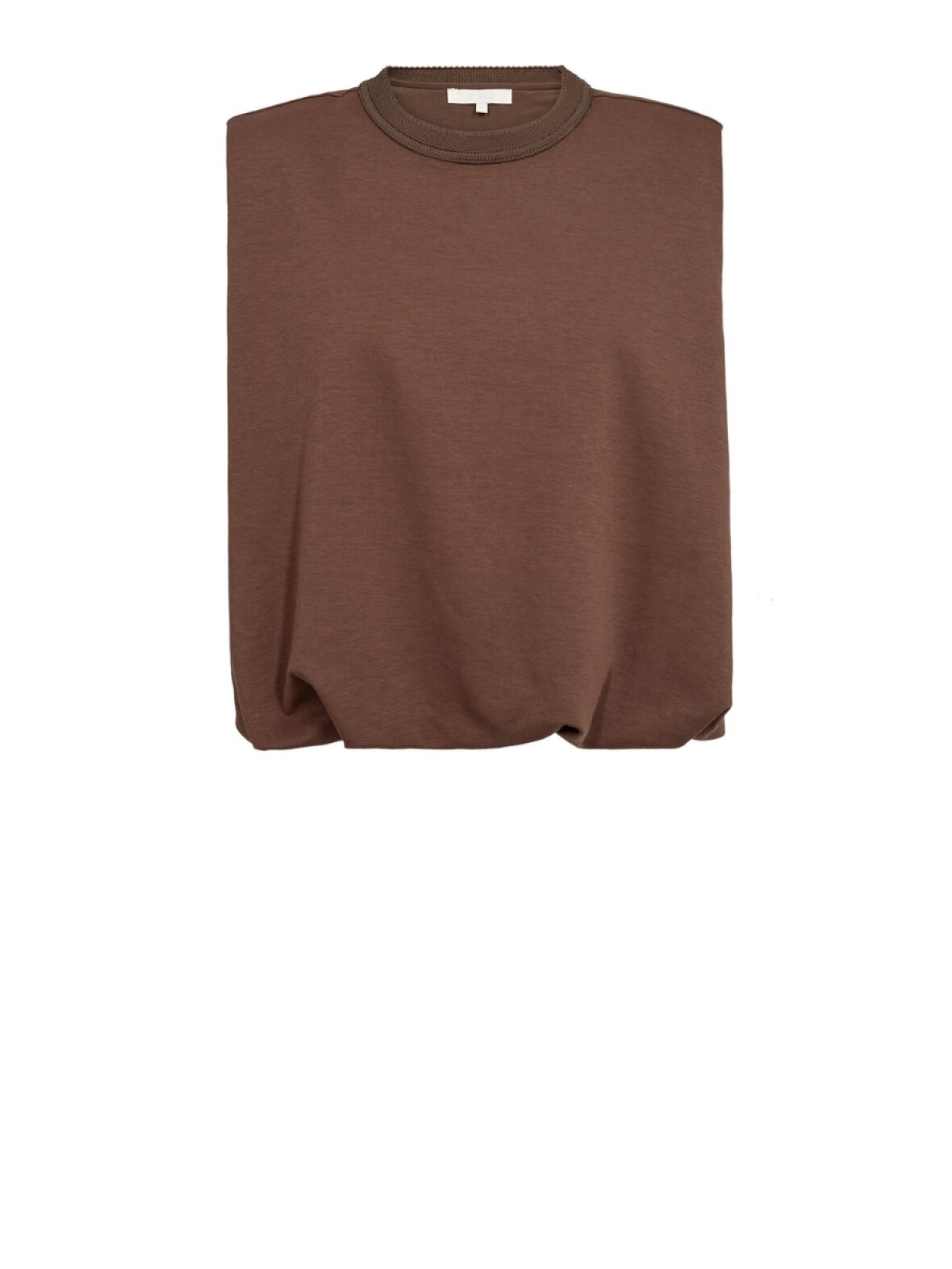 ❤︎ Cool top med små skulderpuder fra Gossia. AnisaGO toppen har et løst rummeligt fit, dobbeltlag og elastik i bunden for at skabe ballon-effekt. Den fine top er i super blød bomuldsblanding, har ingen ærmer og en rund hals.