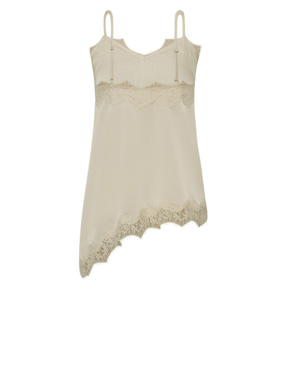 ❤︎ Smuk satin top fra Gossia med de fineste blondekanter. EmberGO toppen har justerbare tynde stropper og er asymmetrisk nederst, som er en lækker detalje, der kan styles på mange smukke og cool måder.