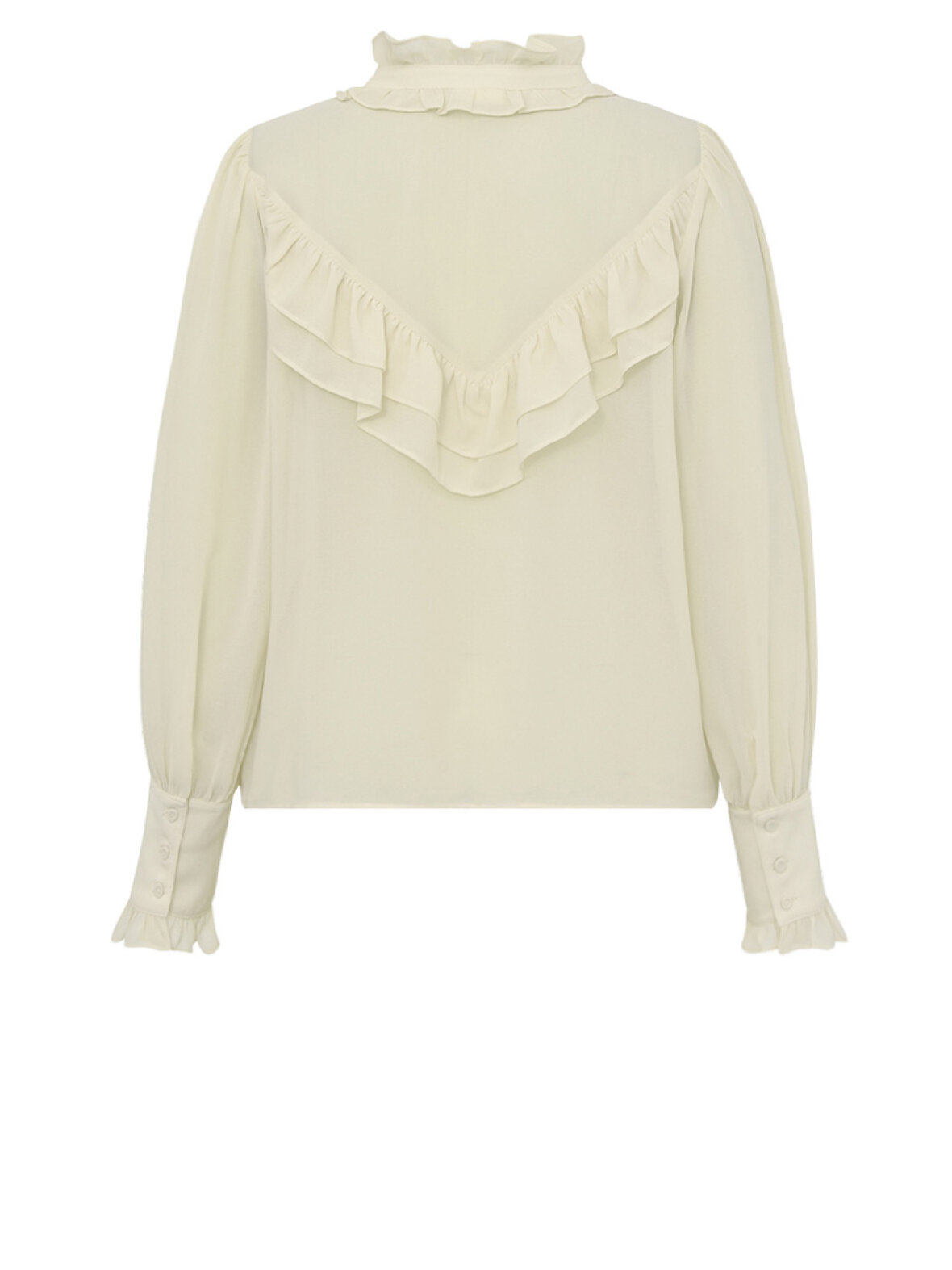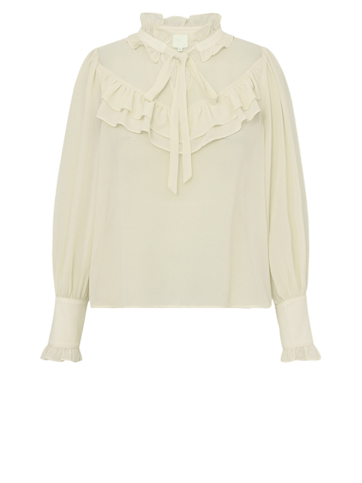 ❤︎ Smuk bluse fra Gossia med fine flæsedetaljer. BrabraGO blusen er designet med lange ærmer med manchetter og et bindebånd i halsen. Blusen er i en tynd kvalitet, som falder pænt når den er på.