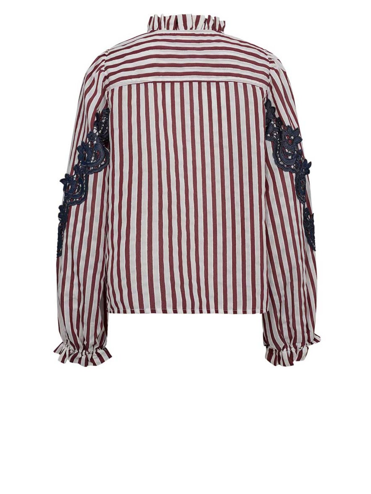 ❤︎ Smuk bluse fra Gossia med lange voluminøse pufærmer med elastik i enden. OlineGO Mai blusen har et lækkert rummeligt fit, fine striber, flæsedetaljer ved hals og håndled, samt smuk broderi midt på, i denim. Foran har den en skjult knaplukning ned over brystet.