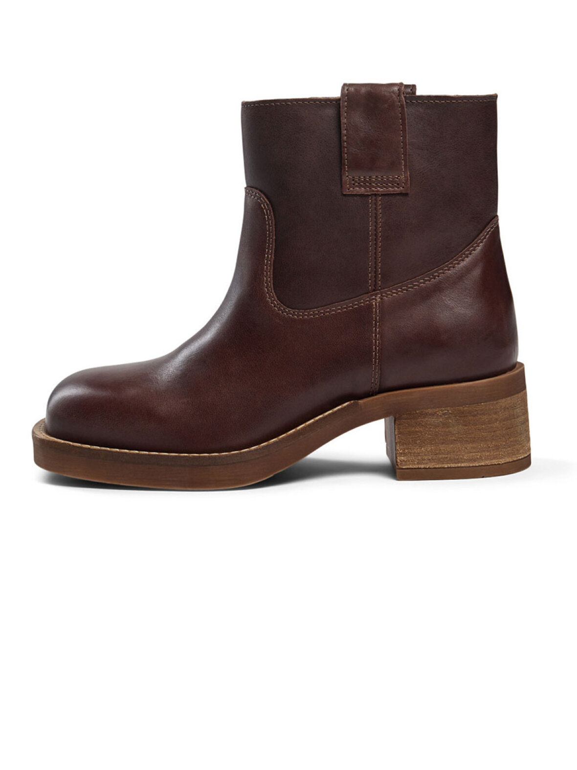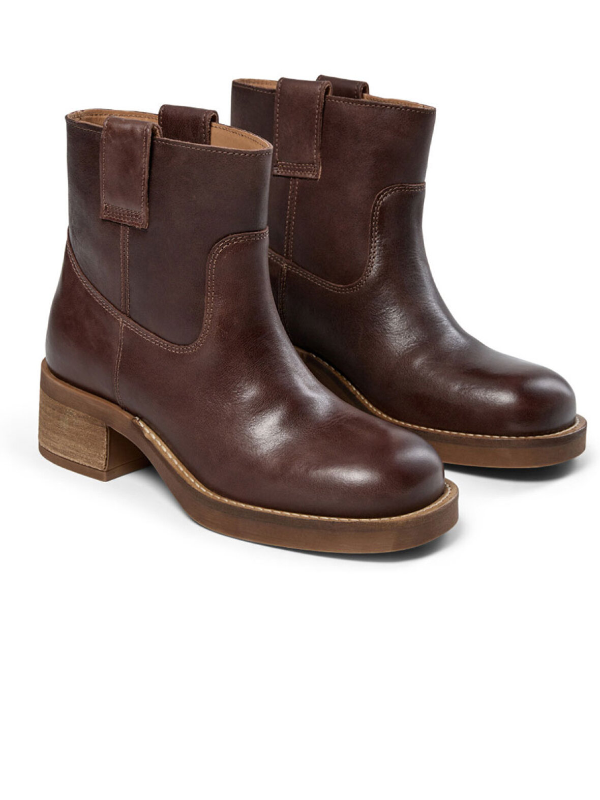Cool ankelstøvle fra Pavement i en flot mørkebrun skindkvalitet. Jenny Vintage støvlen er designet med en bred og rummelig pasform og har et kort skaft.