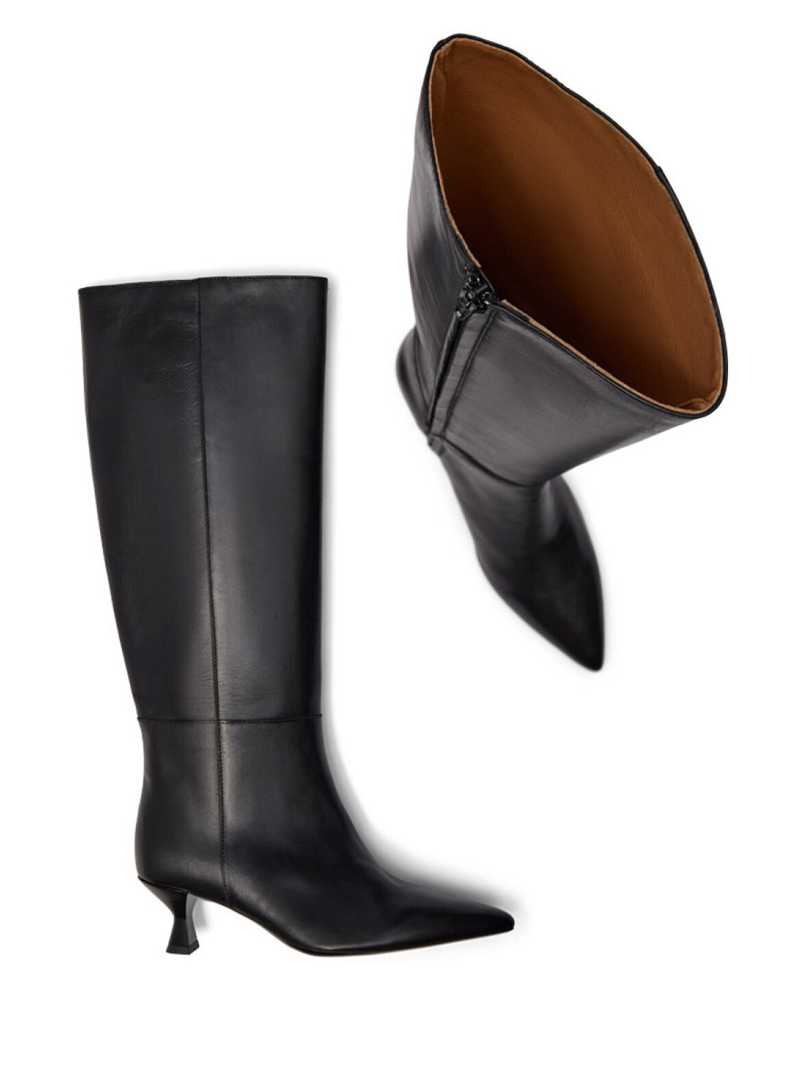 Super smukke støvler fra Pavement med spids snude. Martina støvlerne har en lille hæl og et trendy langt, bredt skaft. Den er i fleksibel skind og er perfekt til at pifte et outfit op.
