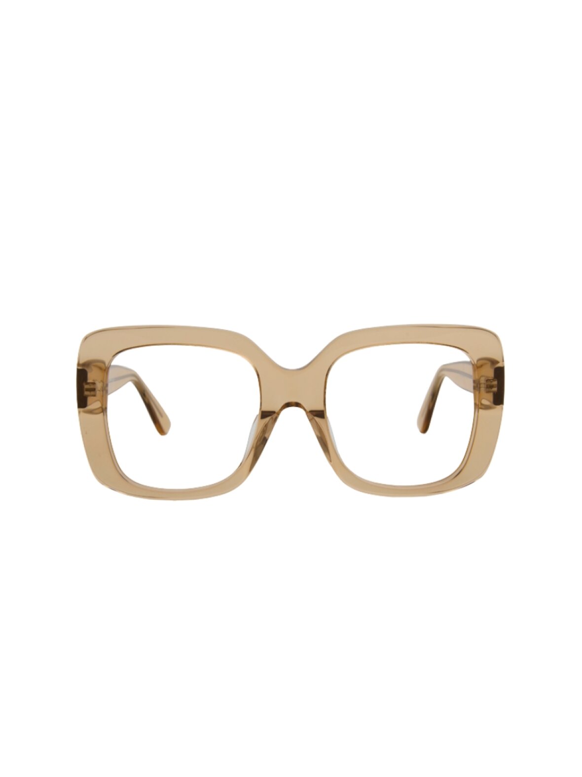 Mio Readers brillen fra Glas, er brune, rektangulære briller med blank finish og kraftigt stel. Den brede bro og de let tonede, klare linser giver et moderne udtryk. Disse fine briller er med styrke.