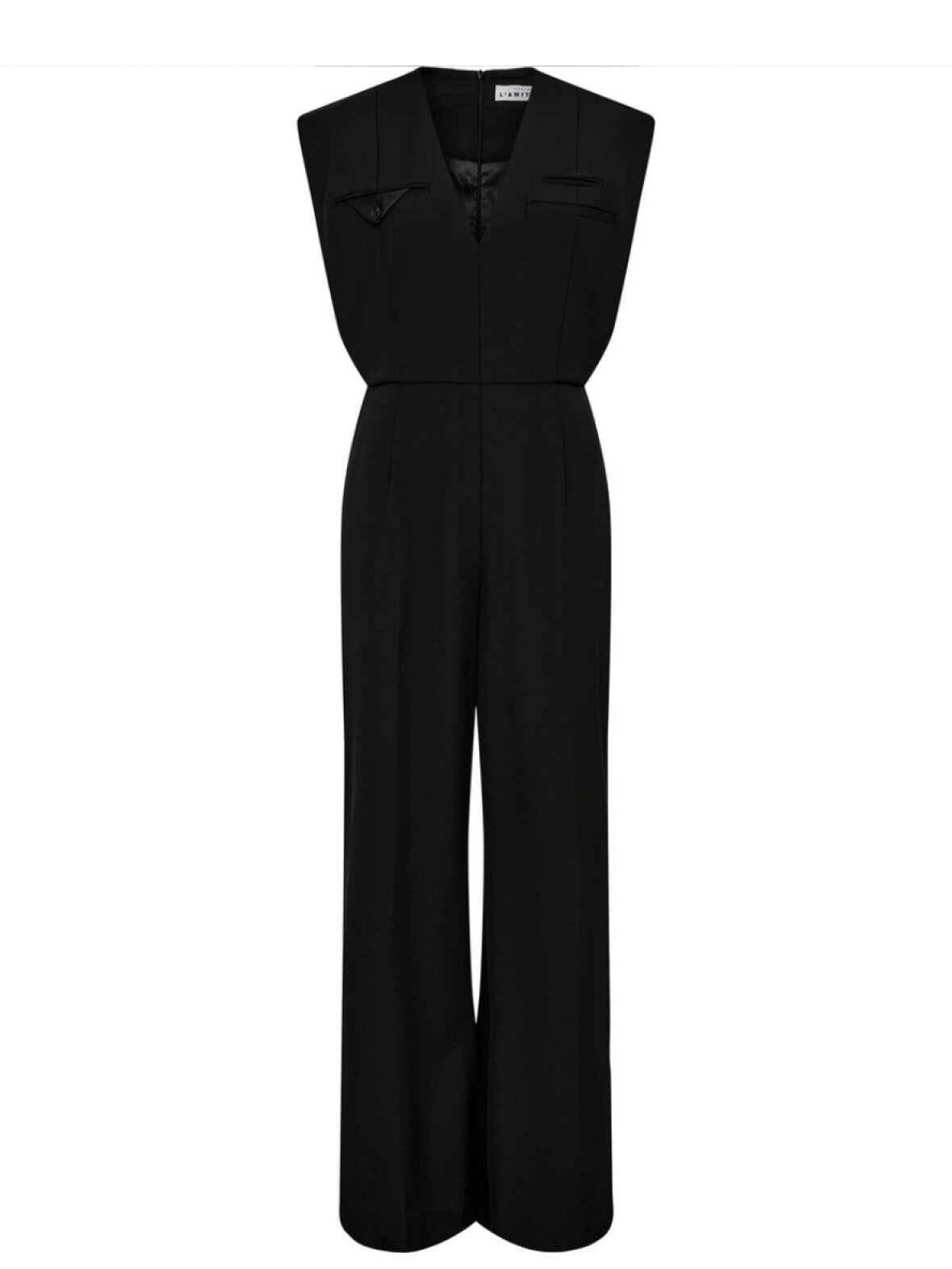 ❤︎ Smuk buksedragt uden ærmer fra Haute L'amitié i en blank habit kvalitet. Jazzy Jump Suit har en flatterende regulær pasform, og et cool box fit i den øverste del. Den er desgignet med fine detaljer på brystet, V-udskæring og skrålommer i taljen. Den fine buksedragt har vidde i benene og lukkes i ryggen med skjult lynlås.