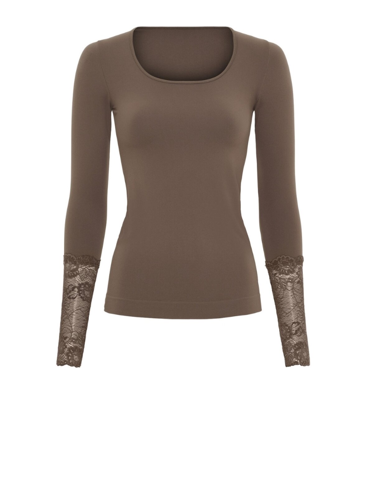 ❤︎ Skønneste bluse fra Tim & Simonsen med smukke feminine blonder. Den tætsiddende bluse er lavet af det blødeste microfiber fremstillet af tekniske garner og har en yderst komfortable pasform, samt er super elastisk. Blusen er uden sidesømme, hvilket gør det muligt at vende blusen efter ønsket look. Den ypperste strækbare microfiber gør, at blusen passer de fleste og smyger sig smukt til kroppen.