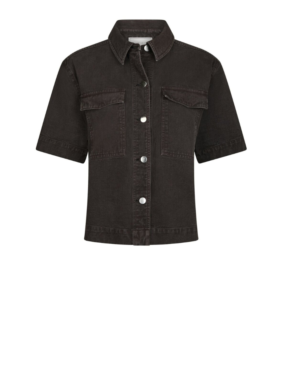 ❤︎ Lækker kortærmet denim skjorte fra Nor Noir i en smuk brun farve. Tiki Solid skjorten er designet med krave, brystlommer og lukkes med knapper foran.