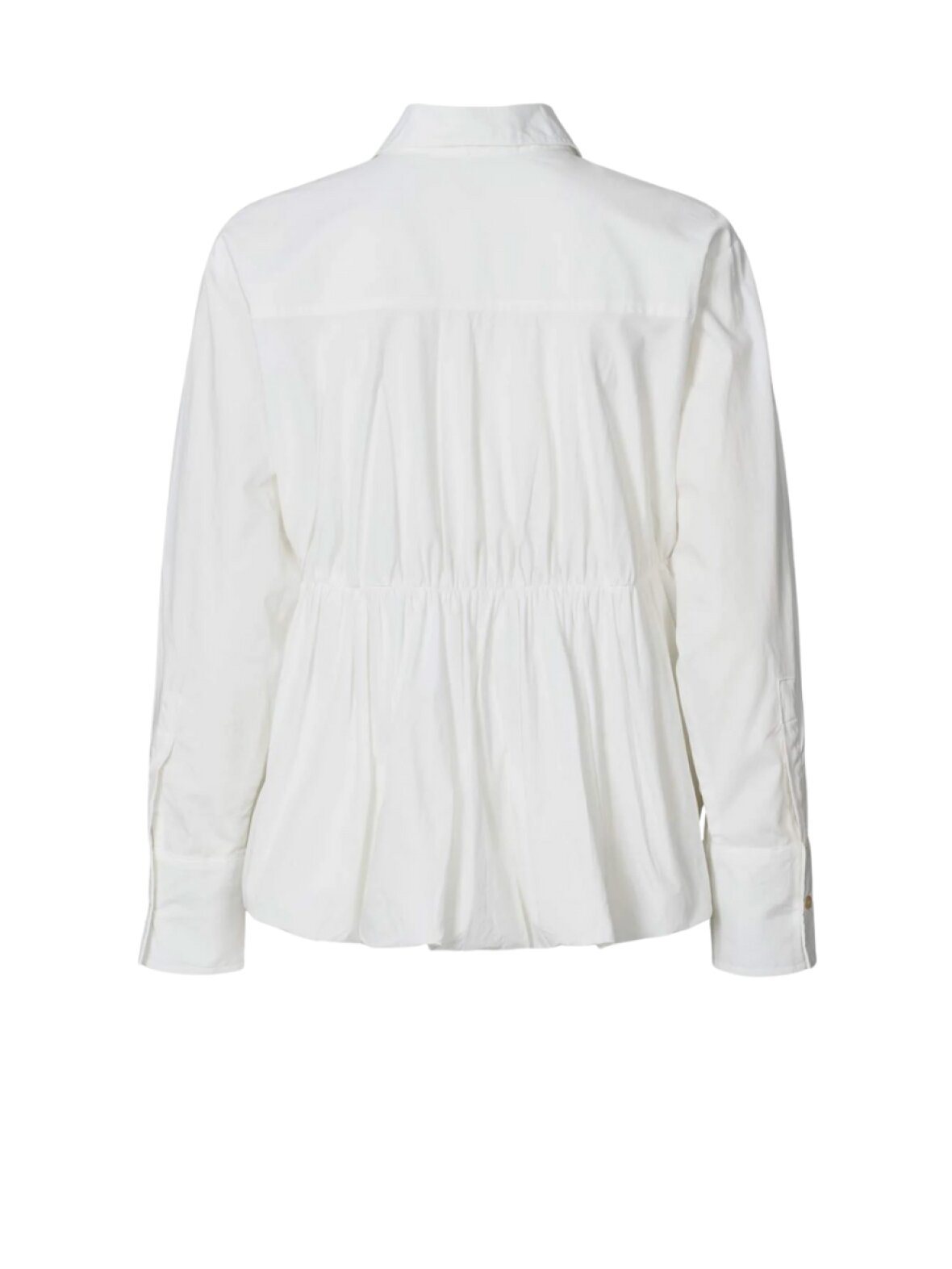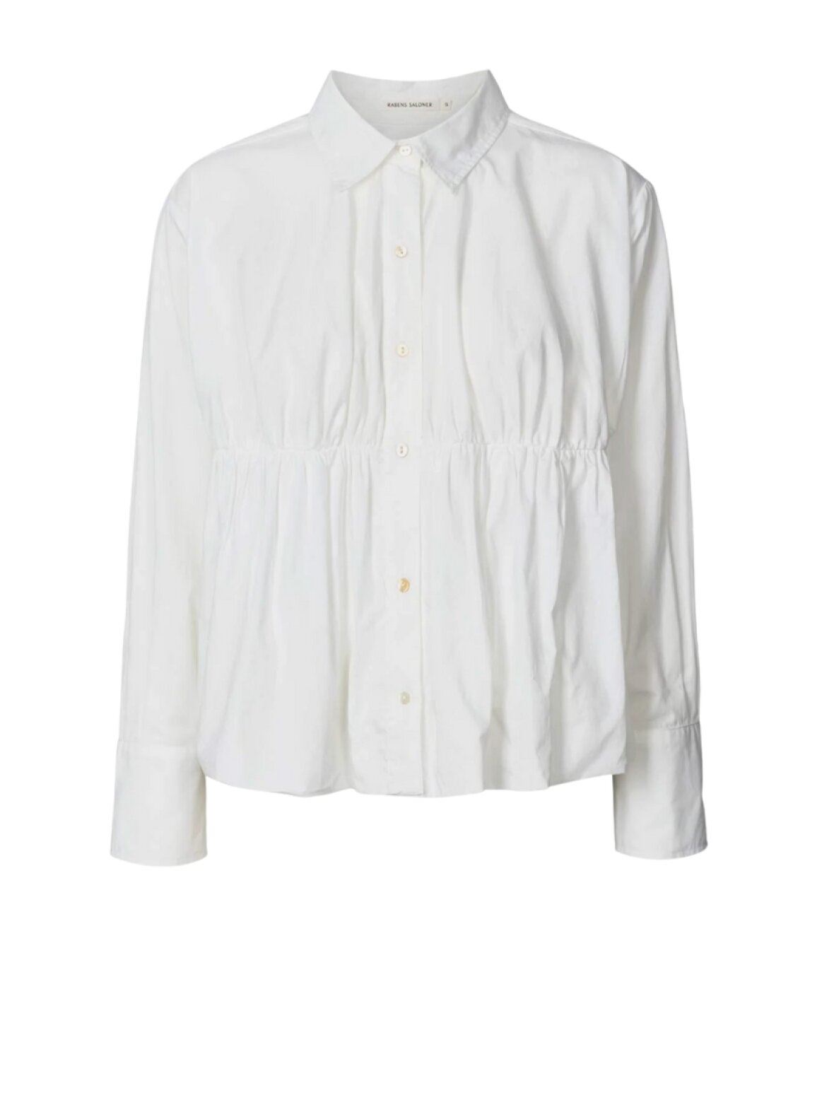 ❤︎ Lækker skjorte i bomulds materiale fra Rabens Saloner. Skjorten har rynket detaljer under brystet, der giver skjorten et puffet look samt knaplukning foran, klassik krave og lange ærmer med manchetter med knapper.