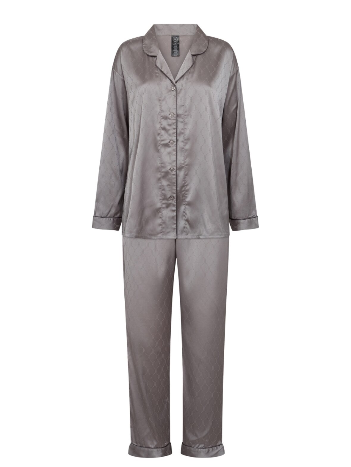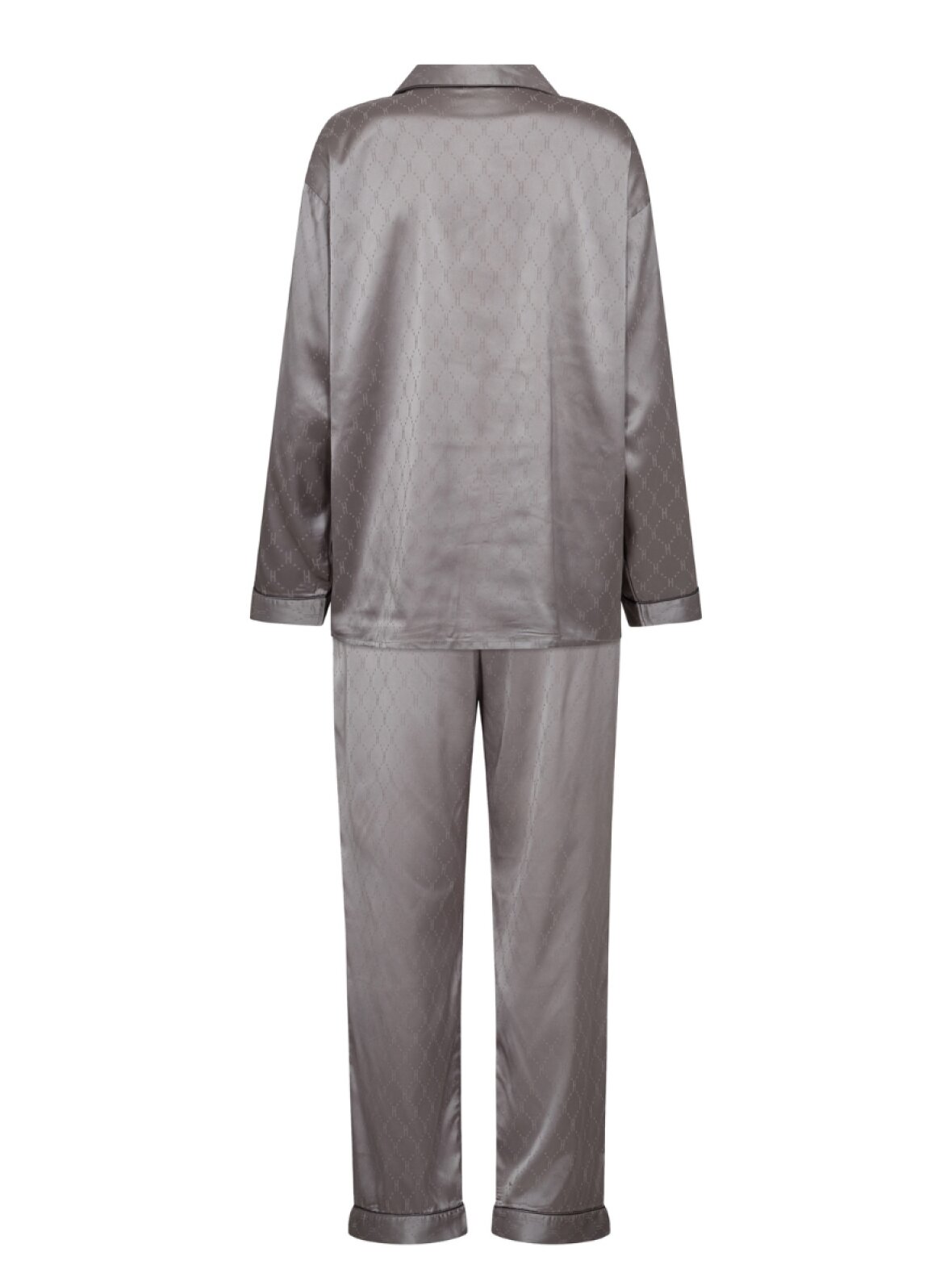 ❤︎ Skøn Hype The Detail pyjamas sæt bestående af en buks med tilhørende skjorte. Satin pyjamas sættet er lavet i en blød og komfortable satin kvalitet med behagelig, løs afslappet pasform. Den elegante buks er med straight leg, sidelommer og har elastik og snøre i taljen for perfekt tilpasning, mens skjorten er løstsiddende med lange ærmer og knaplukning ned foran.