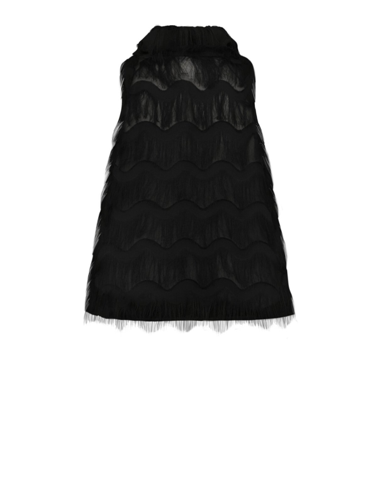 ❤︎ Skøn festlig top fra Gossia uden ærmer. AsjaGO toppen er med smukke frynser, er i semi transparant kvalitet og har en høj elegant halsudskæring.