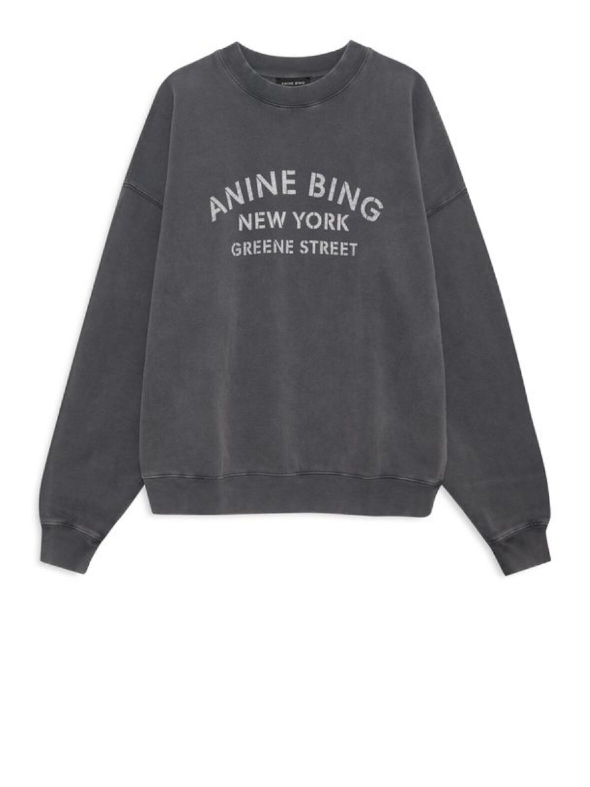❤︎ Sejeste sweatshirt fra Anine Bing med et lækkert washed look i grå. Sweatshirten har cool skrift foran og et cool oversize fit, der gør den både trendy og komfortabel.