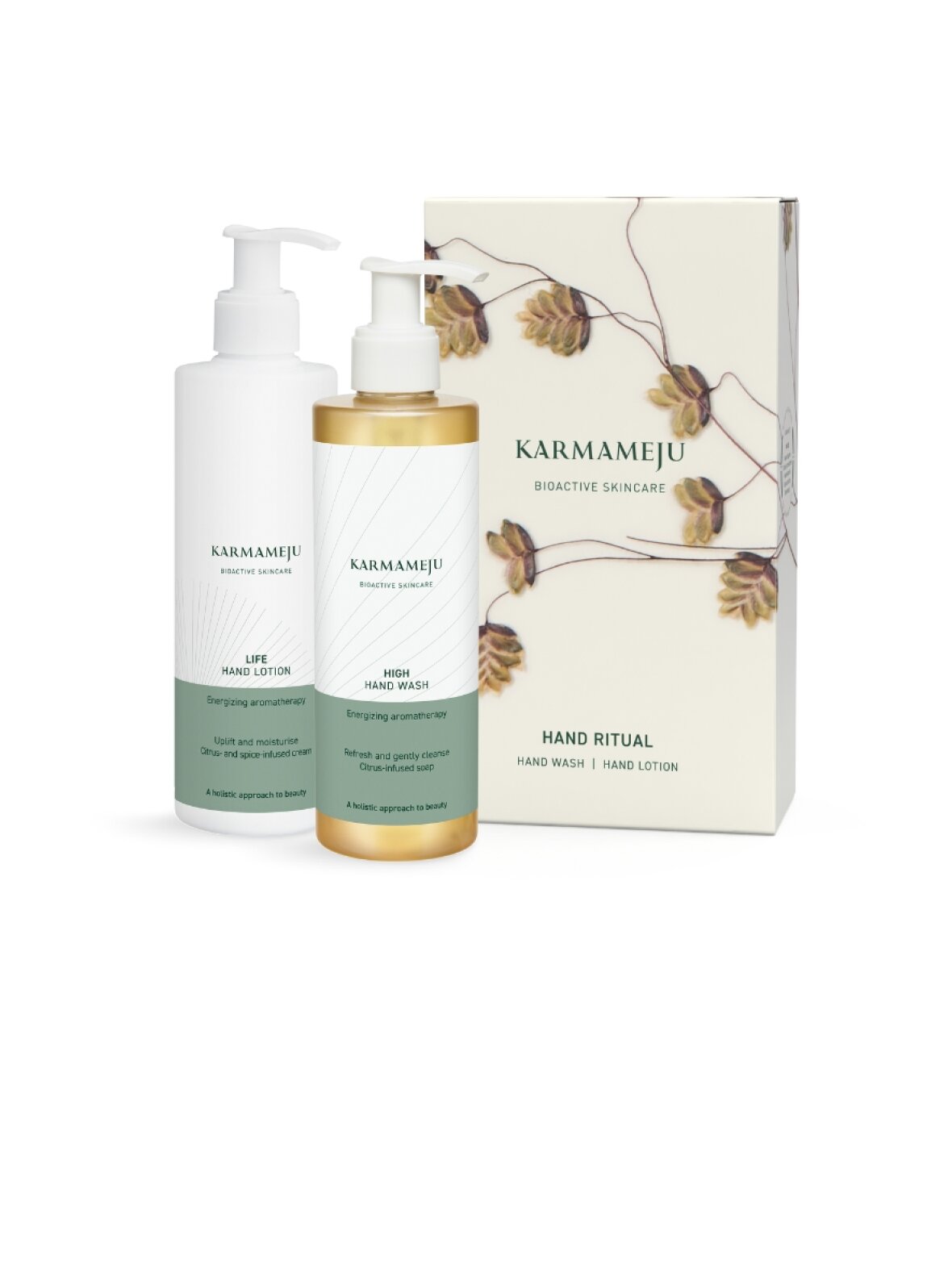 Lækker gaveæske fra Karmameju til dine hænder. Hand Ritual gaveæsken er aromaterapeutisk håndpleje som skånsomt rengør og plejer dine hænder med fugtbevarende, naturlige ingredienser. Hand Ritual forvandler den daglige håndvask til et mini ritual med sansevækkende duftterapi til den daglige håndvask. Et smukt sæt at have stående på både badeværelset og i køkkenet.