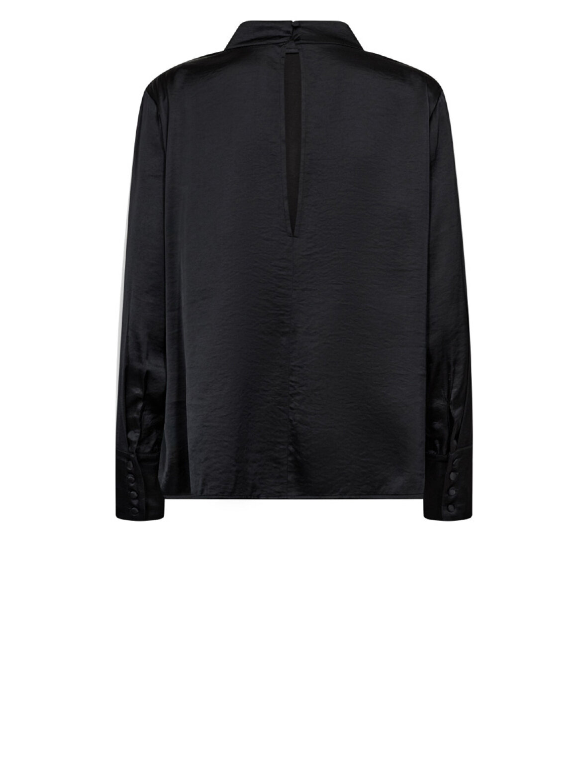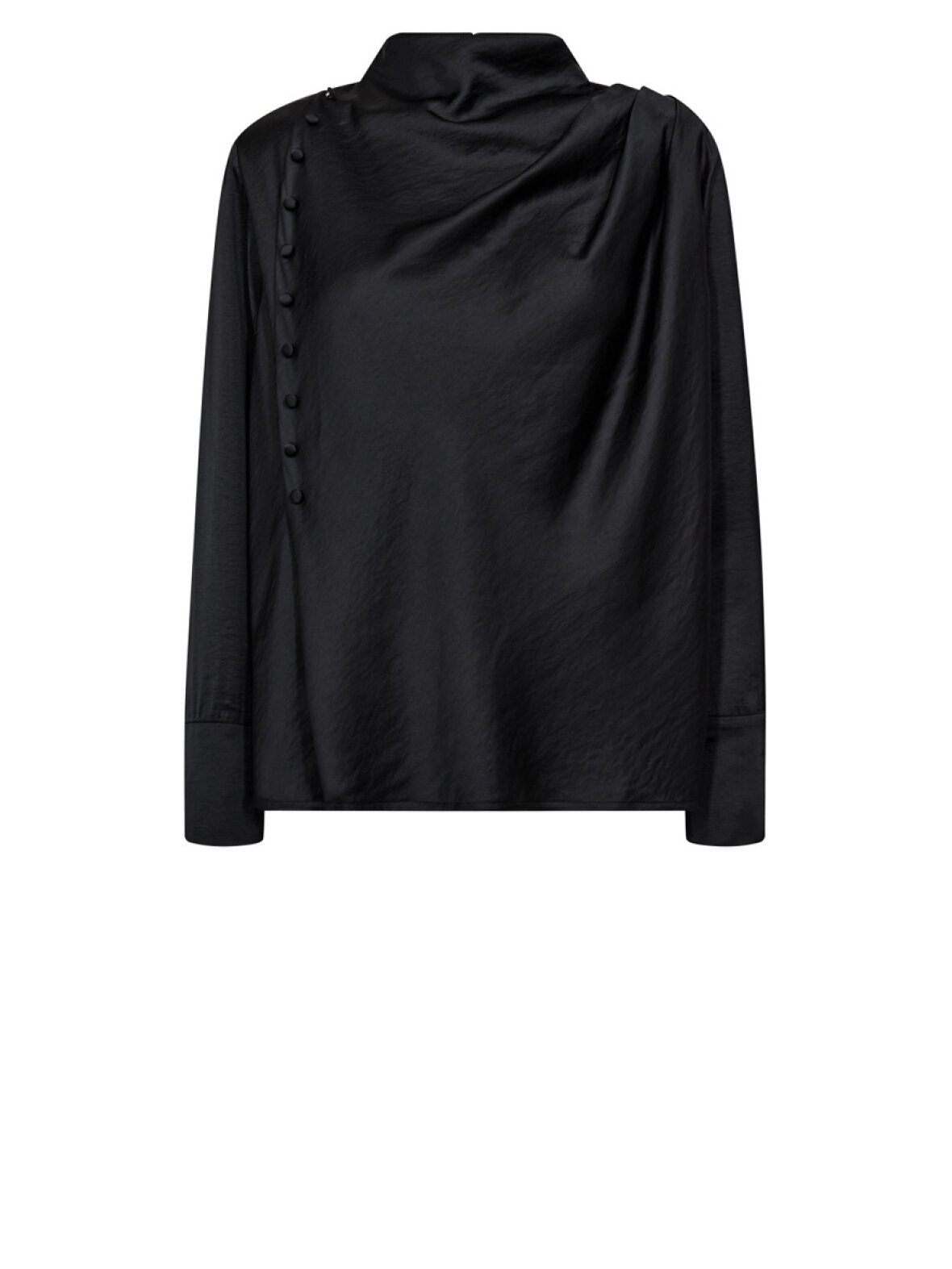 ❤︎ Smuk satin bluse fra Co'Couture med lange ærmer og brede manchetter. HelenCC Button blusen er designet med smuk vandfaldseffekt foran, samt knap lukning i siden af brystet og smukke læg foran. Blusen har et hul i ryggen som lukkes knapper i nakken.