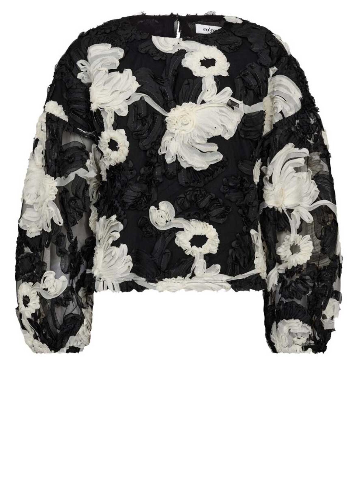 ❤︎ Skøn mesh bluse fra Co'Coture med lange voluminøse ærmer og elastikkant ved håndleddet. FleurCC Fluffy blusen har fine mesh blomster i materialet og en rund hals som lukkes i nakken med knap. Blusen har en bred pasform og et fastsyet lag indvendigt.