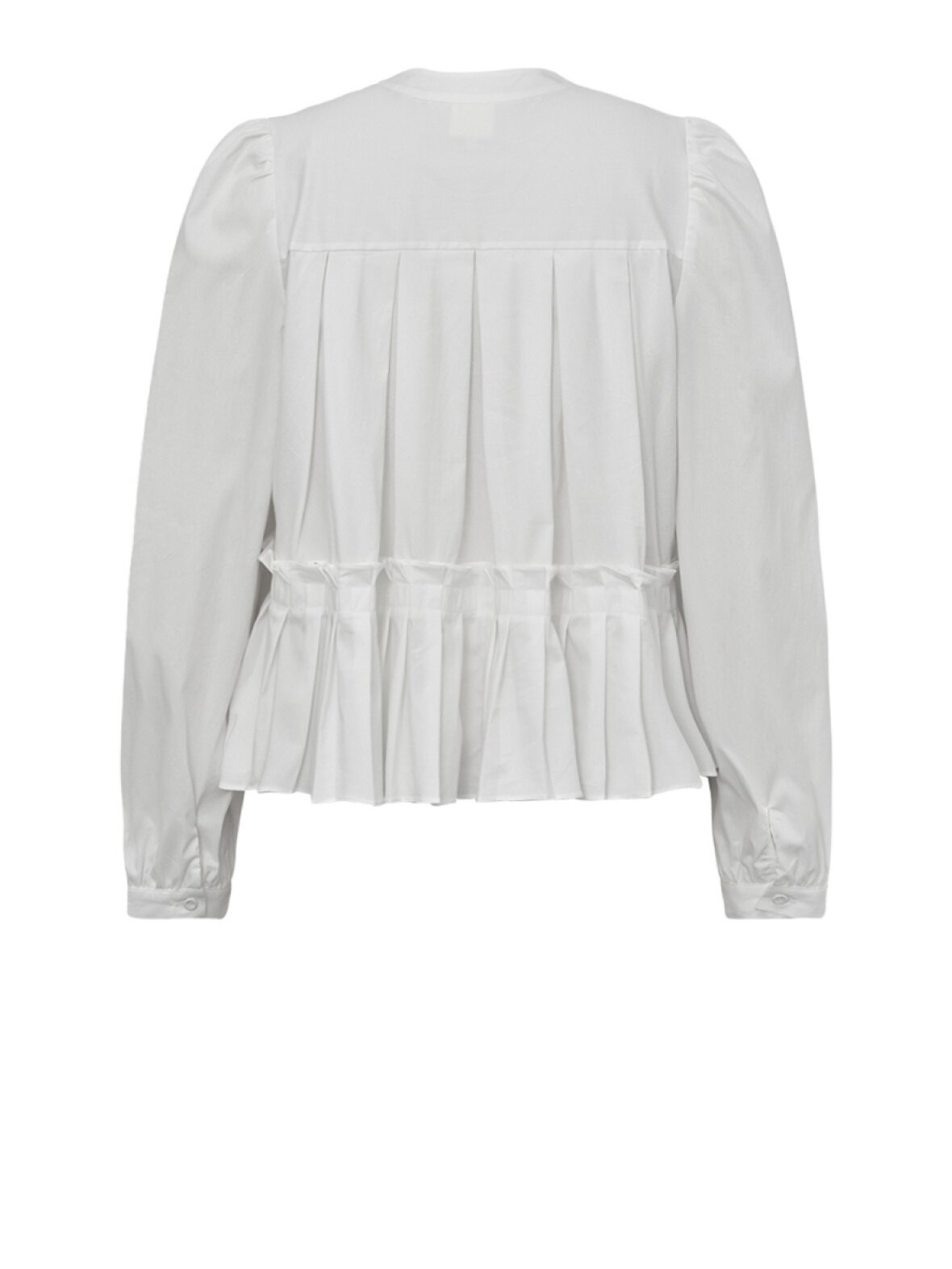 ❤︎ Smuk bluse fra Gossia med lange pufærmer og knaplukning foran. IrmaGO blusen har en smuk rummelig pasform, med mange fine plisse og lægdetaljer.