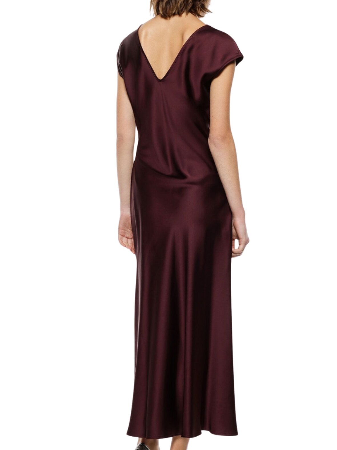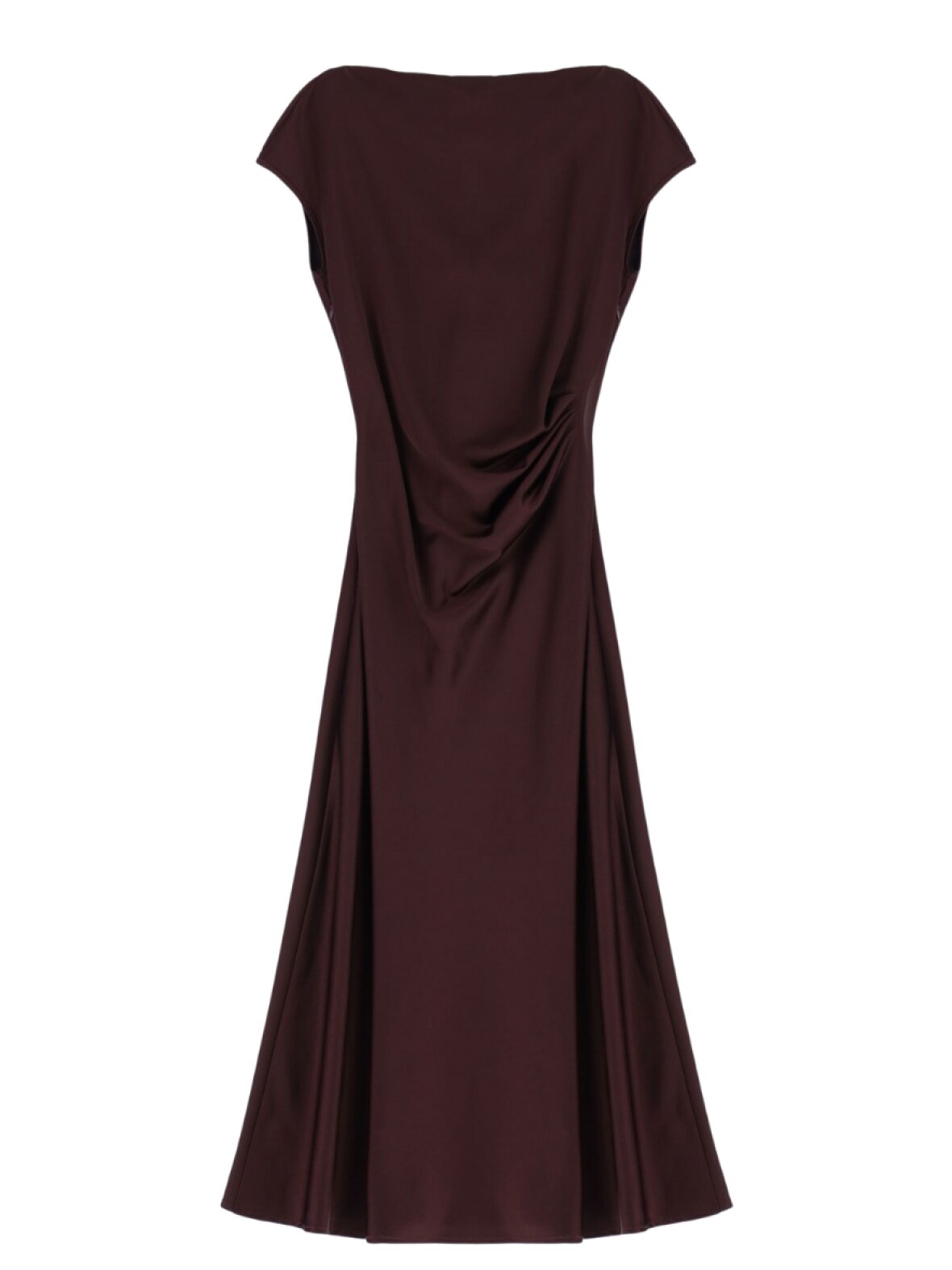 ❤︎ Smukkeste satin kjole fra Imperial i blødt, skinnende materiale. Kjolen er designet med et lille ærme, en båd-halsudskæring, som går ned i et v-slids på ryggen. I siden har den en smuk rynkedetalje, samt slids nederst. I den anden side lukkes den med skjult lynlås.