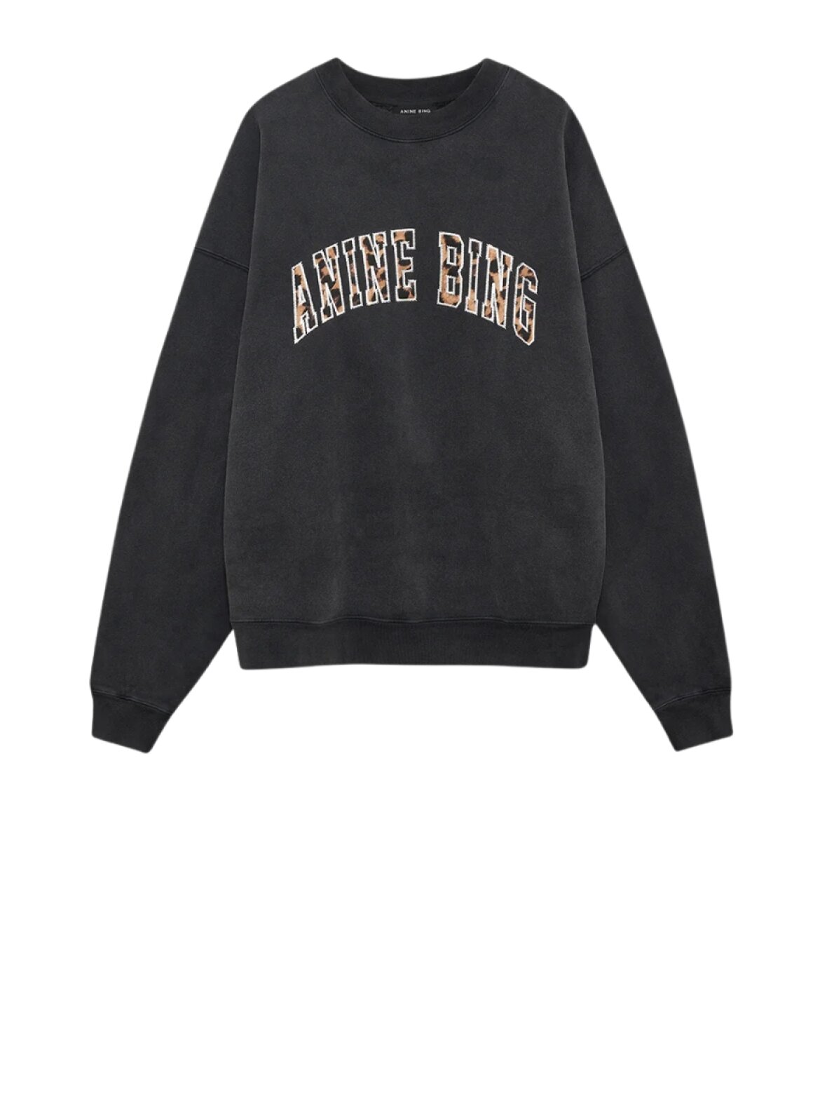❤︎ Sejeste sweatshirt fra Anine Bing med et lækkert washed look. Sweatshirten har cool skrift over brystet i leopard med hvide stikninger. Den er designet i et cool oversize fit, der gør den både trendy og komfortabel.
