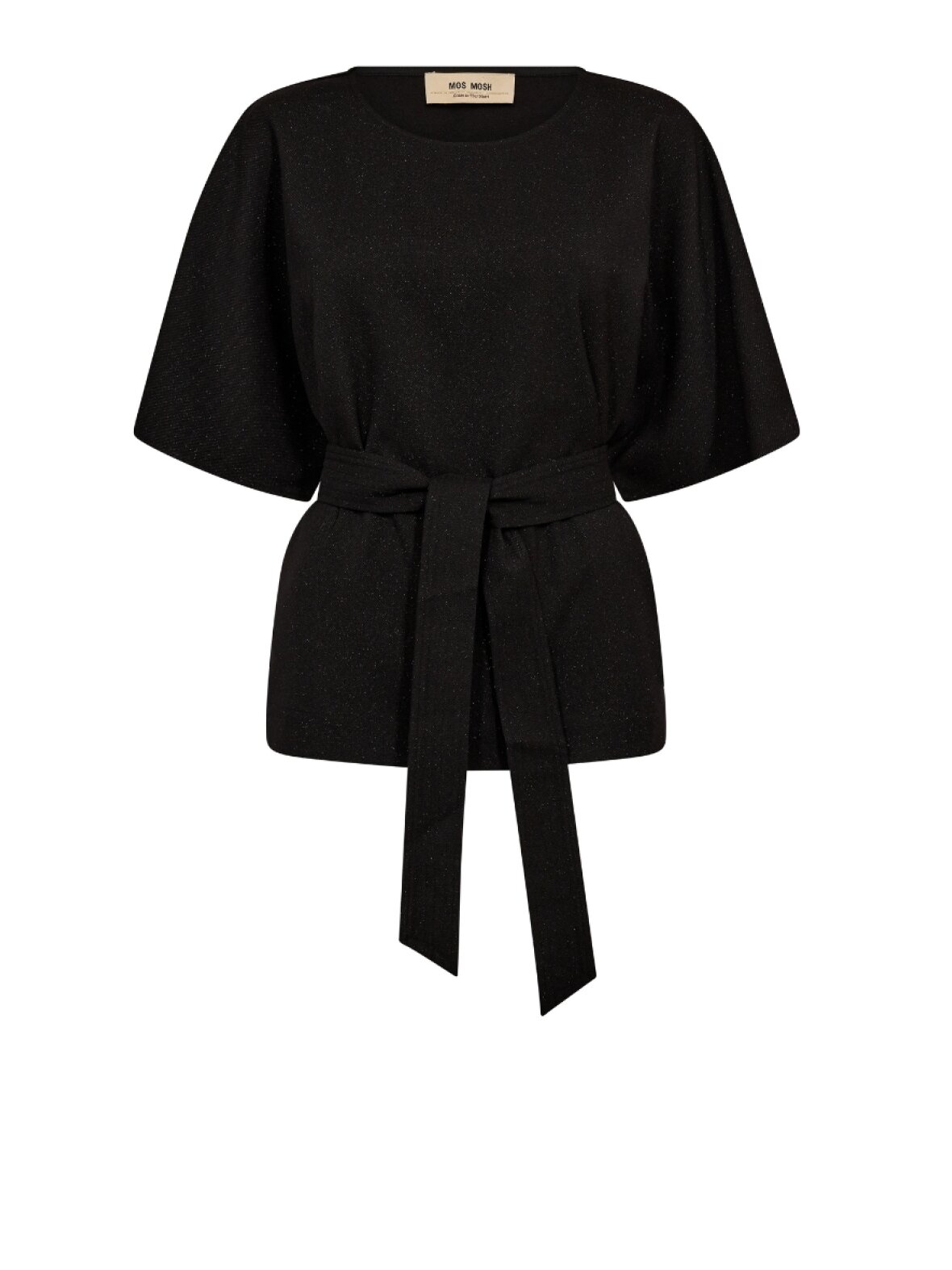 ❤︎ Skøn glimmer bluse fra Mos Mosh med et bredt box fit. MMPie Bellevue blusen har en rund hals, brede korte ærmer og et aftageligt bindebånd, som fremhæver taljen. Den super bløde bluse har små slids i begge sider.