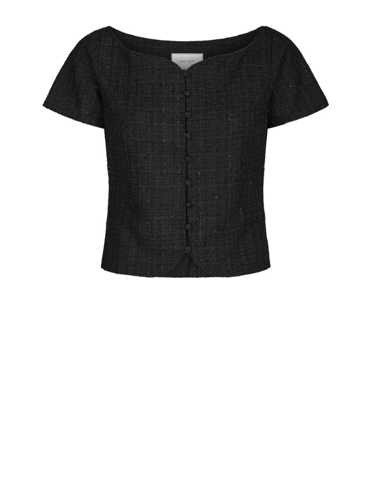❤︎ Smuk top fra Neo Noir i skønt boucle materiale med glimmer i. Tango Boucle toppen har et lille ærme, knappes foran med små fine knapper. Toppen er facon syet, og giver den smukkeste figur.