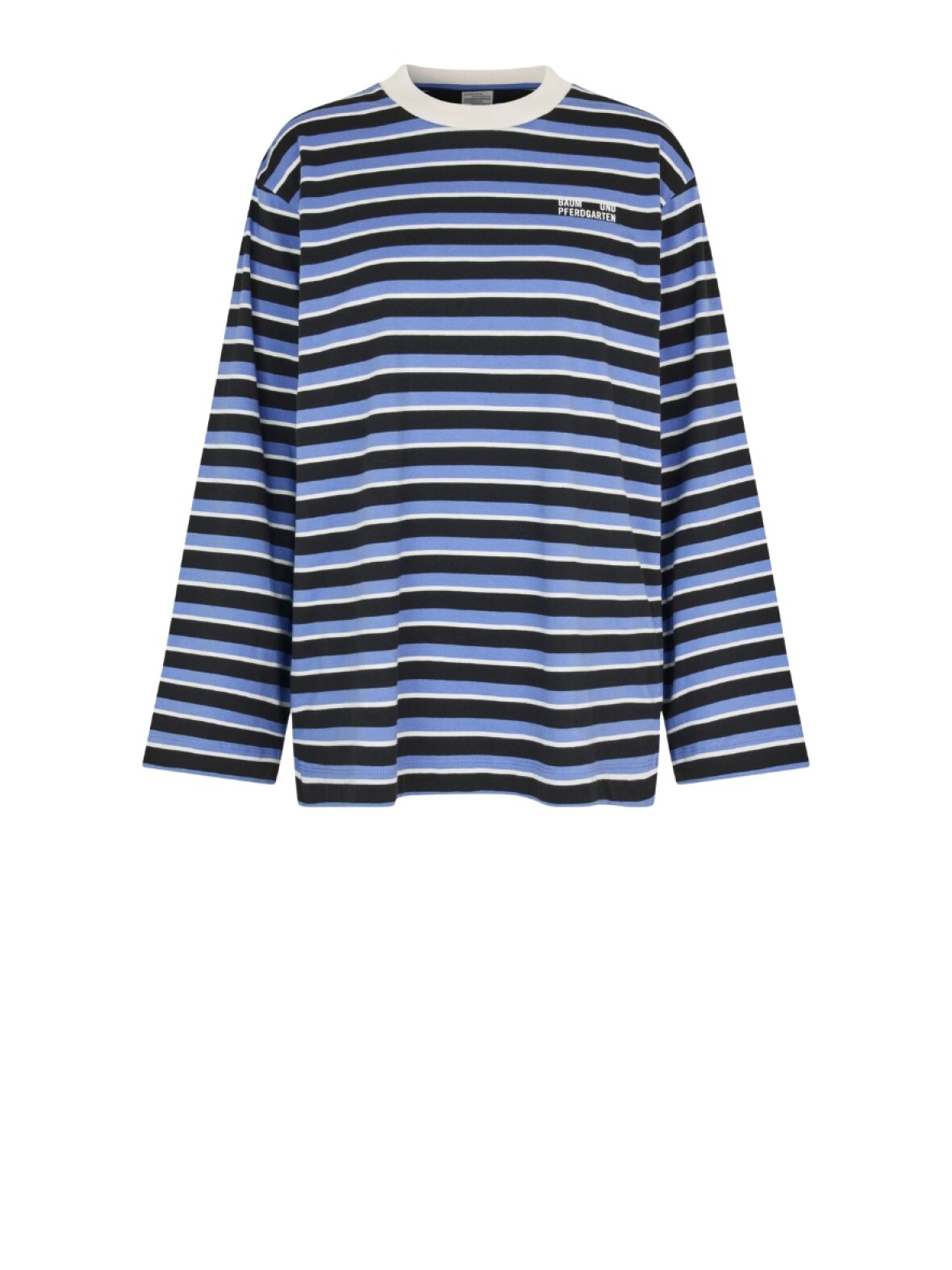 ❤︎ Lækker langærmet t-shirt fra Baum Und Pferdgarten med lille logo på brystet. Jeevana LS t-shirten har fine striber, lange ærmer og rund hals. Det meget oversized fit, bidrager til en cool løs pasform.