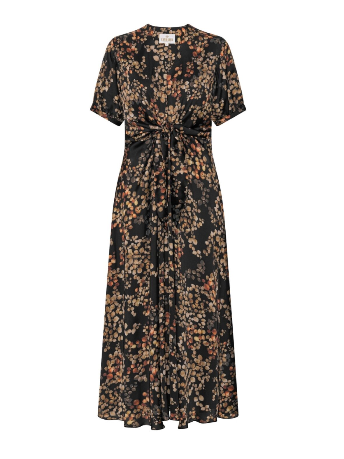 ❤︎ Smuk kjole fra Karmamia med v-hals og knude detalje foran. Faye kjolen er designet som en længere kjole med korte ærmer, samt vidde i skørtet. En virkelig skøn og feminin kjole i en smukt skinnende satin kvalitet, som falder smukt og er behagelig at have på.