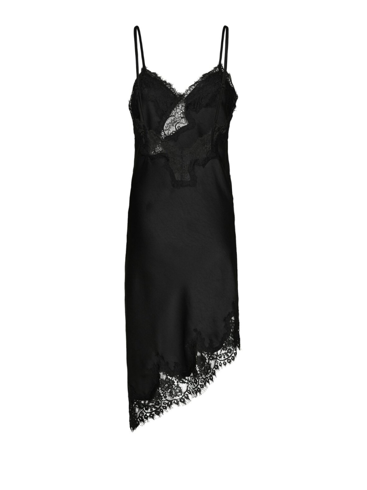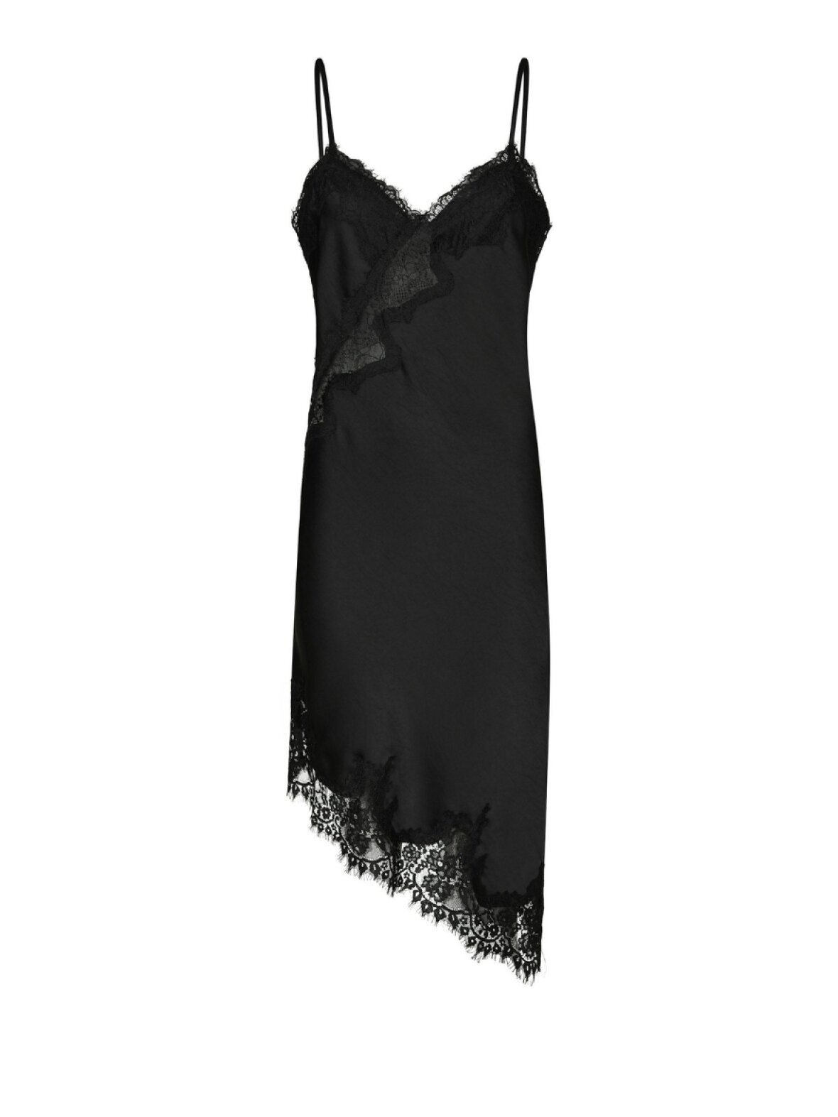❤︎ Smuk satinkjole fra Neo Noir med tynde justerbare stopper. Sorelle Lace kjole har de fineste blondekanter samt v-udskæring. Nederst har den en skrå kant. Kjolen kan styles smukt i sig selv, men også gøres mere rå med jeans eller andet under.