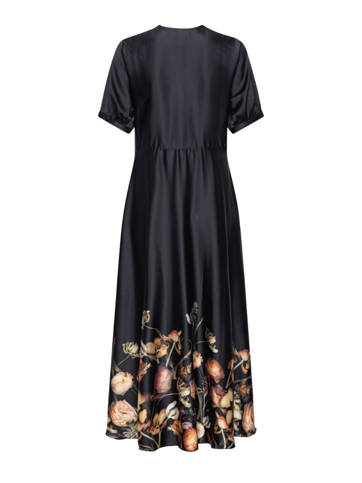 ❤︎ Smuk kjole fra Karmamia med v-hals og knude detalje foran. Faye kjolen er designet som en længere kjole med korte ærmer, samt vidde i skørtet. En virkelig skøn og feminin kjole i en smukt skinnende satin kvalitet, som falder smukt og er behagelig at have på.