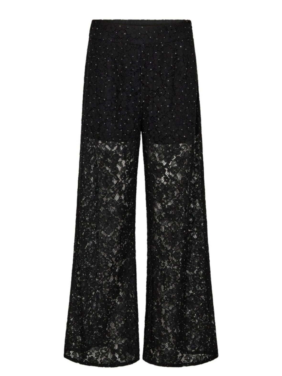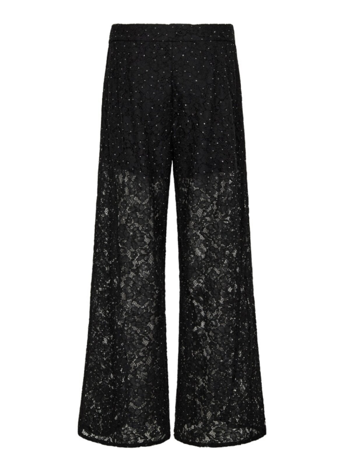 ❤︎ Smukke blonde bukser fra Co'Couture designet med fine sten. SiaCC Simili Lace buksen har korte inder shorts og har ellers semi transparente ben. De lukkes i siden med en skjult lynlås og har skøn vidde i benene.